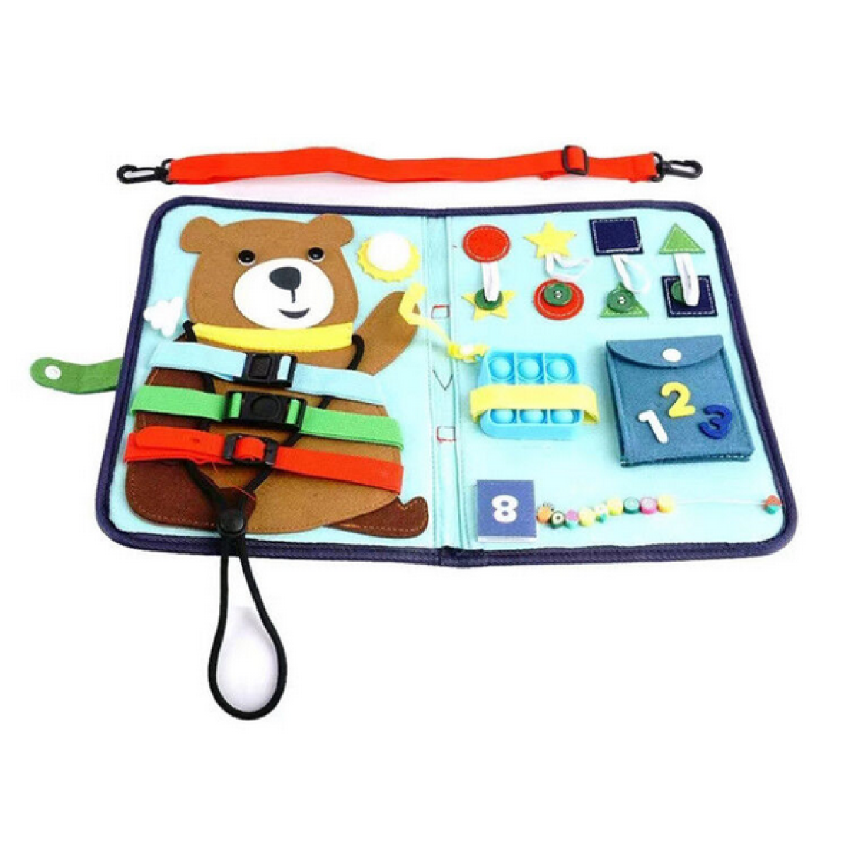 Vstúpte s vaším dieťaťom do čarovného sveta objavovania! Senzorická busy kniha Medvedík od 2Kids Toys spája hru a učenie v jednom milom balení. Na každej stránke čaká nové dobrodružstvo – zapínanie gombíkov, rozväzovanie šnúrok, pracky či zipsy pripravené pre malého objaviteľa. Kniha rozvíja motoriku, logické myslenie, trpezlivosť aj fantáziu a podporuje samostatnosť dieťaťa. Je mäkká, ľahká a ideálna na cesty aj do postieľky. Perfektný darček, ktorý poteší aj rozvíja.