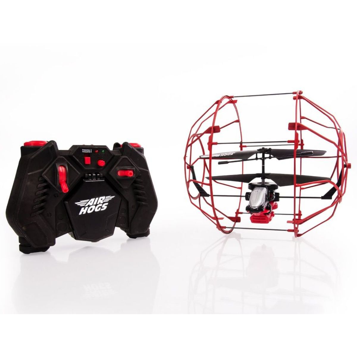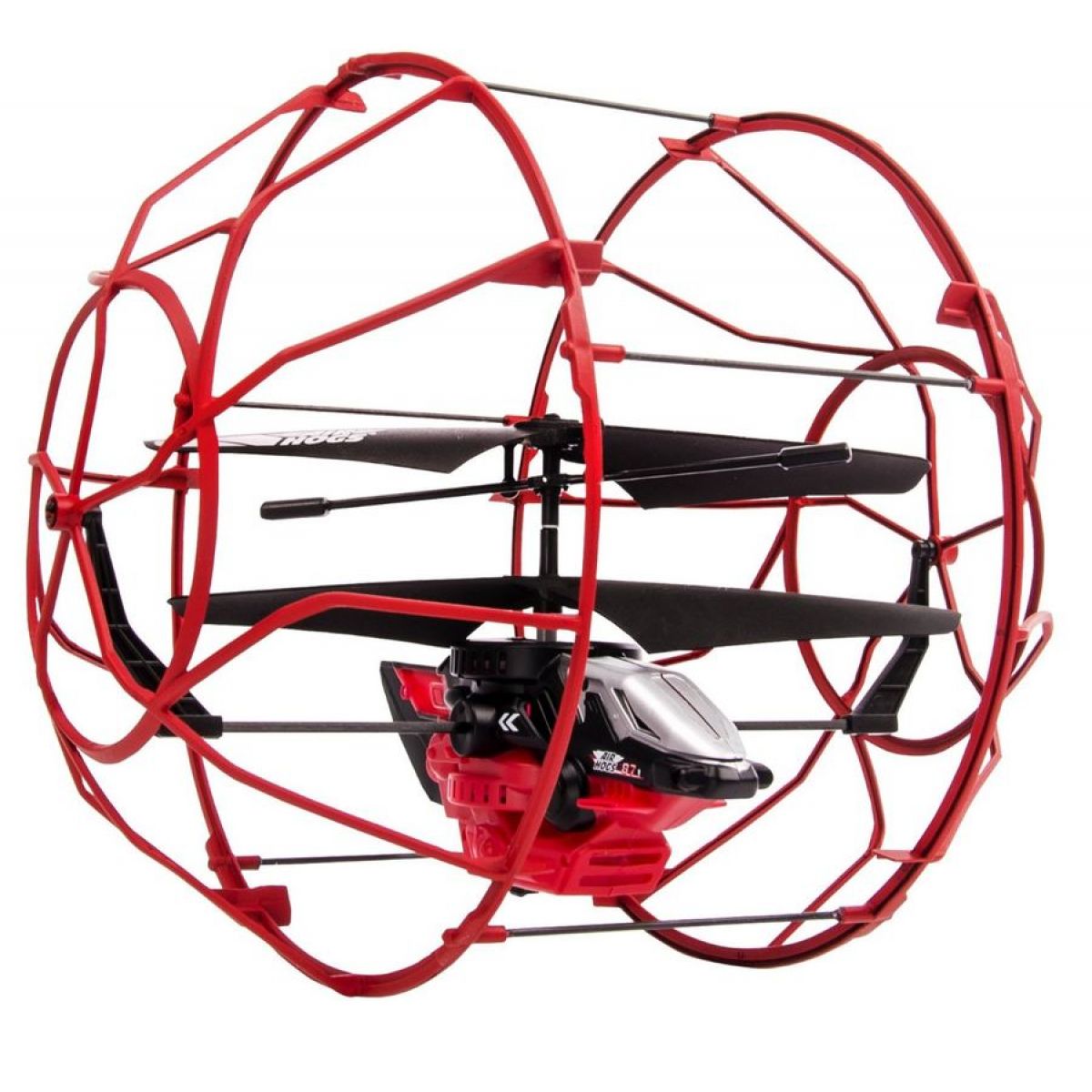 Vrtulník na dálkové ovládání v bezpečnostní kleci. Odolná klec chrání vrtulník proti přímým nárazům a zároveň se umí kutálet po zdech i po stropě. Vrtulník se rozjede z každé polohy, již nemusíte chodit pro spadlou helikoptéru.