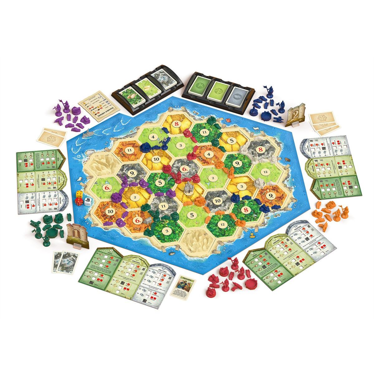 Súprava prináša všetko potrebné na okamžité zapojenie ďalších hráčov – figúrky, dosky pokroku, hrady, prehľady nákladov aj žetóny víťazných bodov. Stačí skombinovať so základnou hrou Catan, rozšírením základnej hry pre 5–6 hráčov a pôvodným rozšírením Mestá a rytieri.