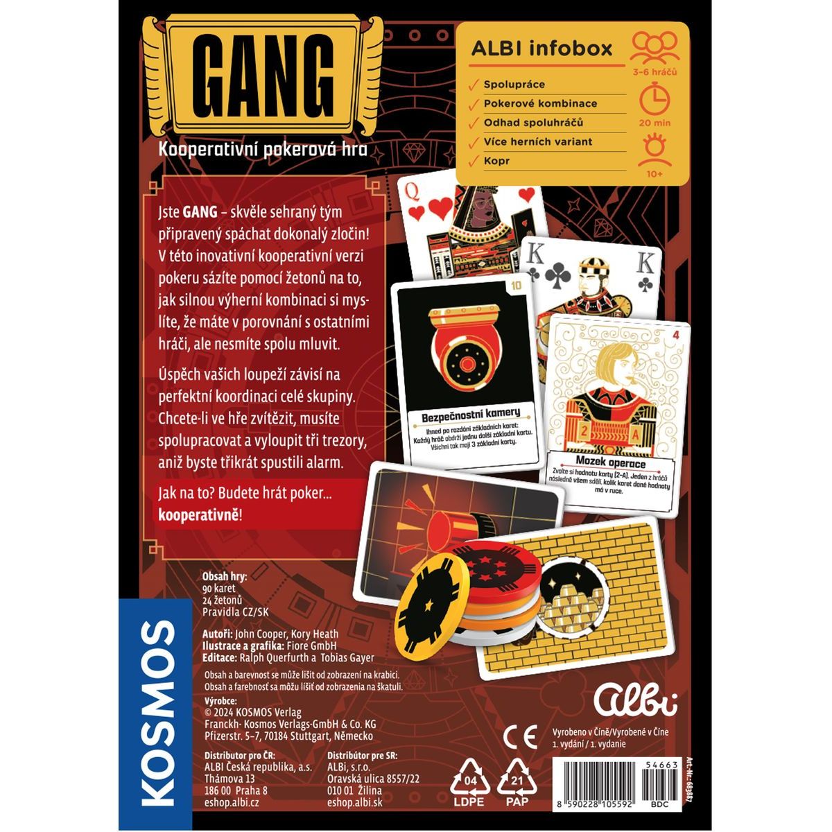 Staňte sa členom dokonale sehraného gangu v kooperatívnej hre Albi Gang, kde poker hráte ako tím. Sádza sa na silu kariet, plánuje stratégie a koordinujú akcie bez slov. Dokonalá spolupráca je kľúčom k úspechu – vylúpiť 3 trezory, bez toho aby ste spustili alarm trikrát. Hra je vhodná aj pre začiatočníkov a kombinuje napätie pokru s tímovou stratégiou a zábavou pre všetkých hráčov.