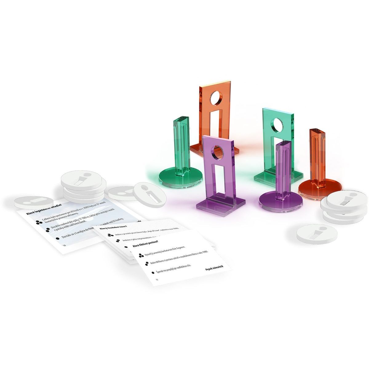 Obsah balenia: 400 kariet, 1 herný plán, 4 iKNOW figúrky, 4 iBET figúrky, 35 žetónov (20 bielych a 15 čiernych), pravidlá hry