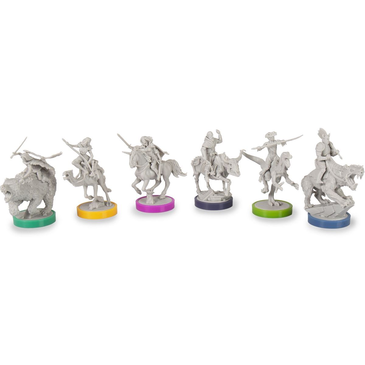 Obsah balenia: 6 jazdeckých figurek hrdinov, 6 farebných kotúčov na podstavce