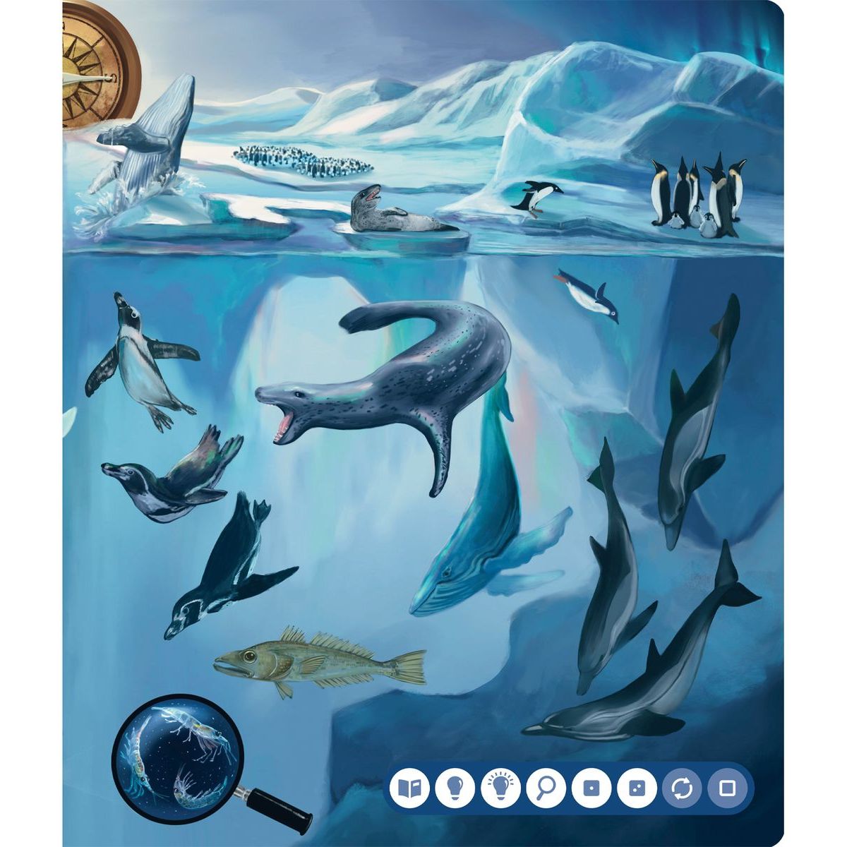 Objavte tajomstvá morí a oceánov s interaktívnou knihou plnou fascinujúcich zvierat, potopených vrakov a planktonu, ktorý vás prevedie hlbinami. Kniha s viac než 1 500 zvukovými stopami umožňuje deťom spoznávať život pod hladinou interaktívne a zábavnou formou, rozvíja ekologické povedomie a podporuje záujem o morské ekosystémy.