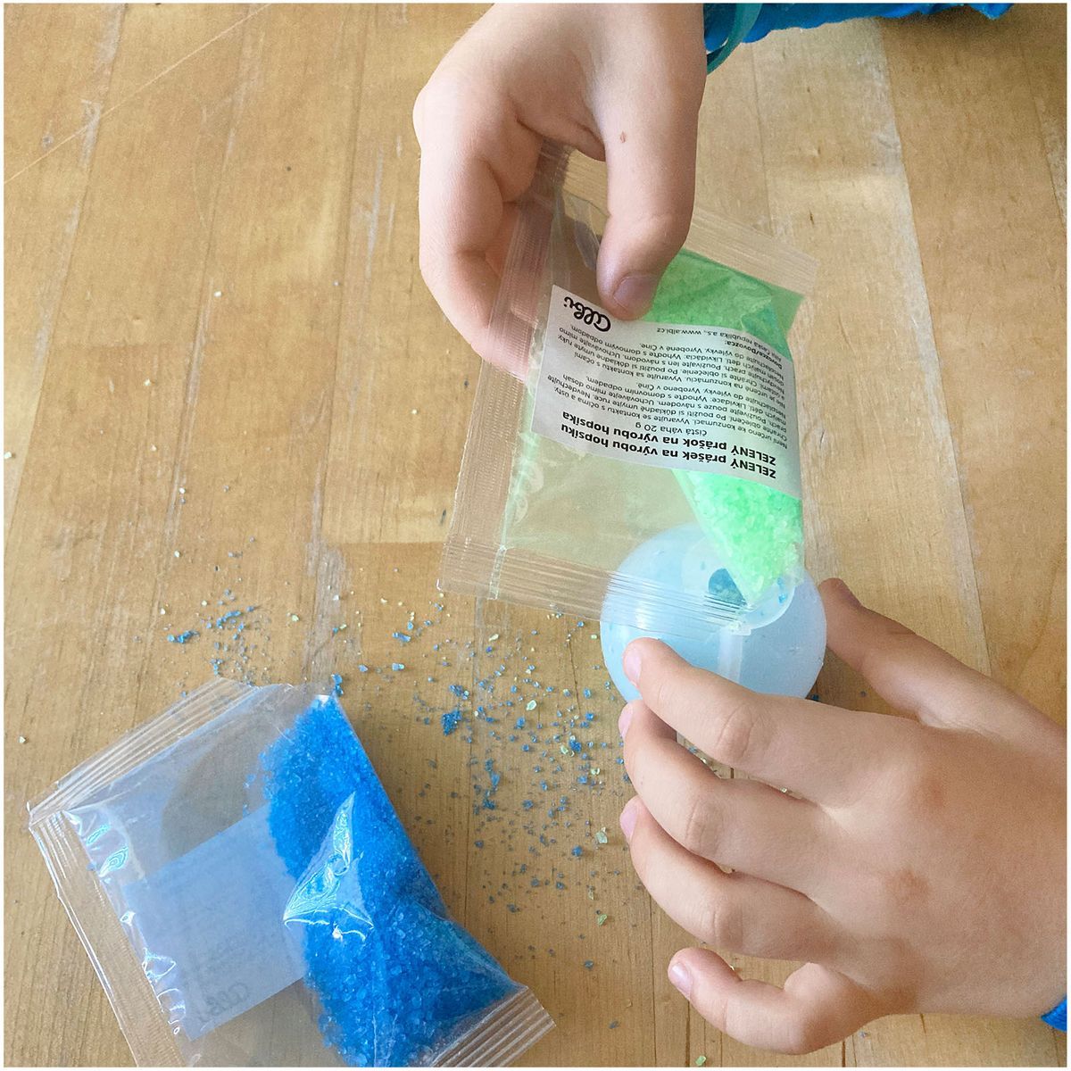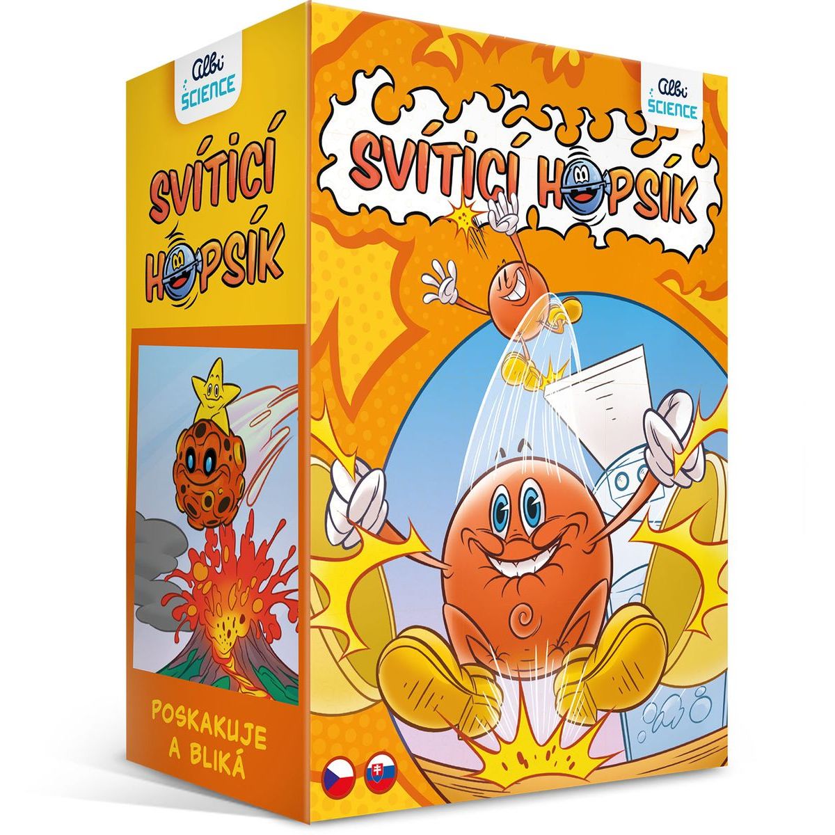 S Albi Svietiaci hopsík – 2. vydanie sa deti môžu stať malými chemikmi a vytvoriť si svietiace hopsíky podľa vlastnej fantázie. Stačí vložiť guľôčku do formy, nasypať zmes a ponoriť do vody – za 30 minút vzniká blikajúci a poskakujúci hopsík, ktorý zabaví celé popoludnie. Hra podporuje kreativitu, jemnú motoriku a zábavné experimentovanie s farbami a svetlom.
