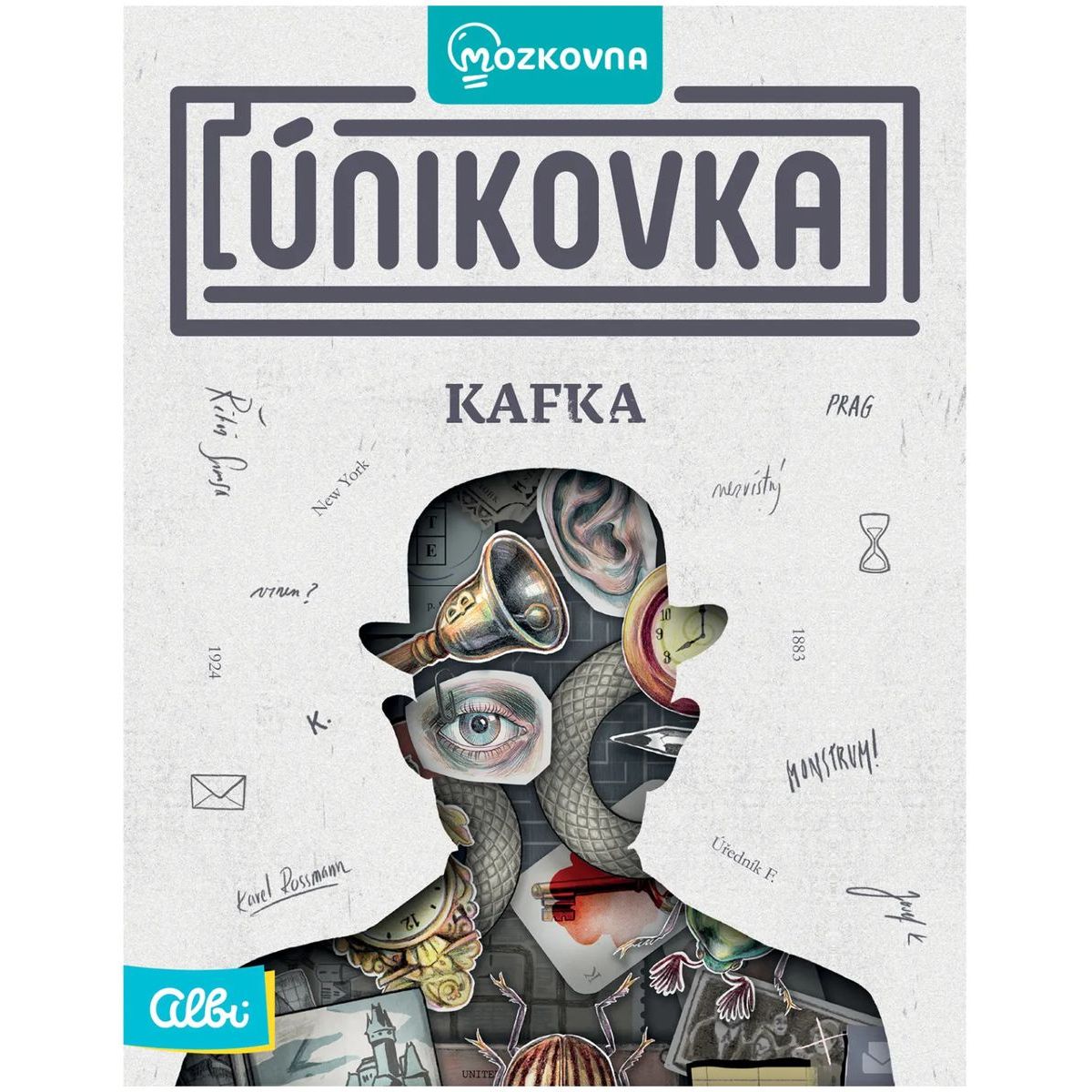 Albi Únikovka Kafka vás zavedie do sveta záhad a nečakaných súvislostí inšpirovaných tvorbou Franz Kafka. Nečakajte klasický postup karta po karte – v tejto hre sa karty rozložia na stôl do tajomného „chumlu“, v ktorom musíte hľadať správne odpovede ukryté medzi hádankami, rébusmi a logickými úlohami.