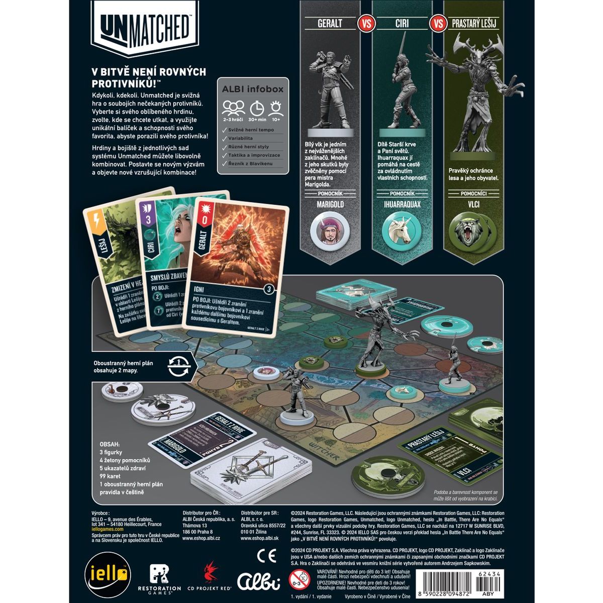 Objavte svet Zaklínača v kartovej hre Unmatched - Striebro a oceľ. Staňte sa Geraltom, Ciri alebo Prastarým Lešijem a využite ich jedinečné schopnosti v napínavých súbojoch proti priateľom či rodine. Hra ponúka jednoduché kombinácie s ďalšími sadami Unmatched a prináša hodiny strategickej zábavy, kde každý ťah rozhoduje.