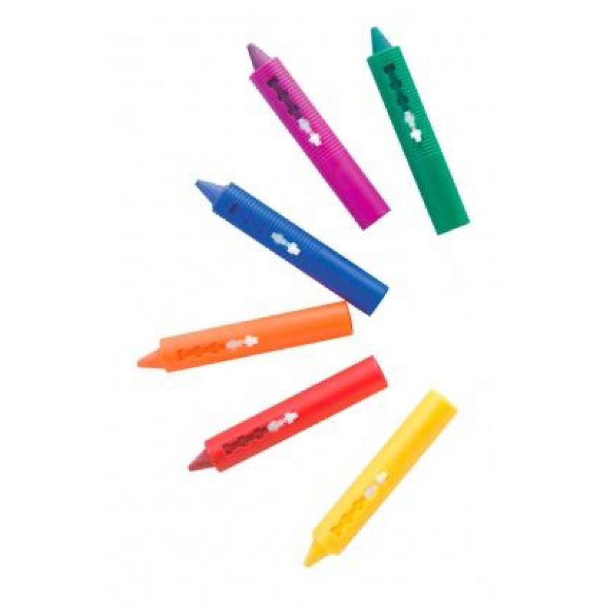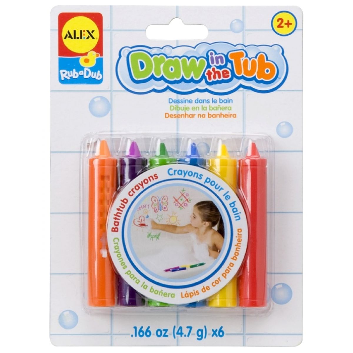Kresli se sadou barevných pastelek na vanu, kachličky nebo na kůži. Pastelky jsou snadno smývatelné.