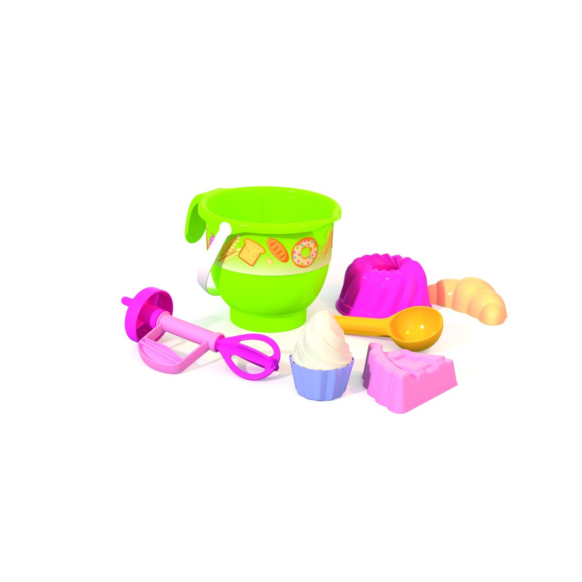 Sada na piesok Pekáreň ponúka deťom možnosť vytvárať svoje vlastné pieskové koláče priamo vonku. Súčasťou je vedierko s priemerom 18 cm, tri formičky – bábovka, cup cake a šľahačka, mixér aj naberačka pre nekonečnú zábavu pri tvorení.