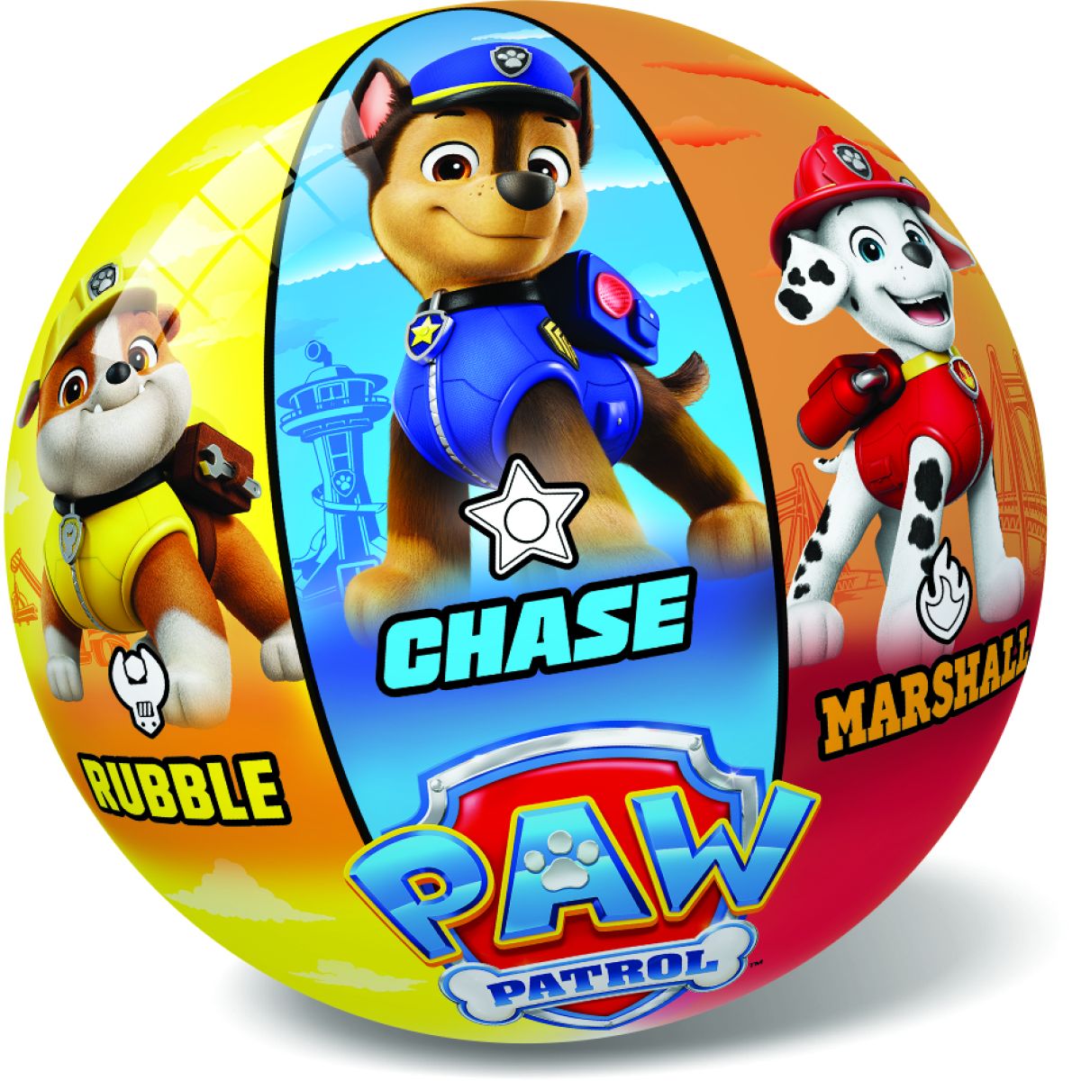 Tento farebný loptu s motívom Psieho oddielu poteší každé dieťa od 3 rokov. Má priemer 14 cm a je ľahká, takže sa s ňou dobre hádže aj chytá. Vyrobené v Grécku, je vhodná na hranie doma aj vonku.
