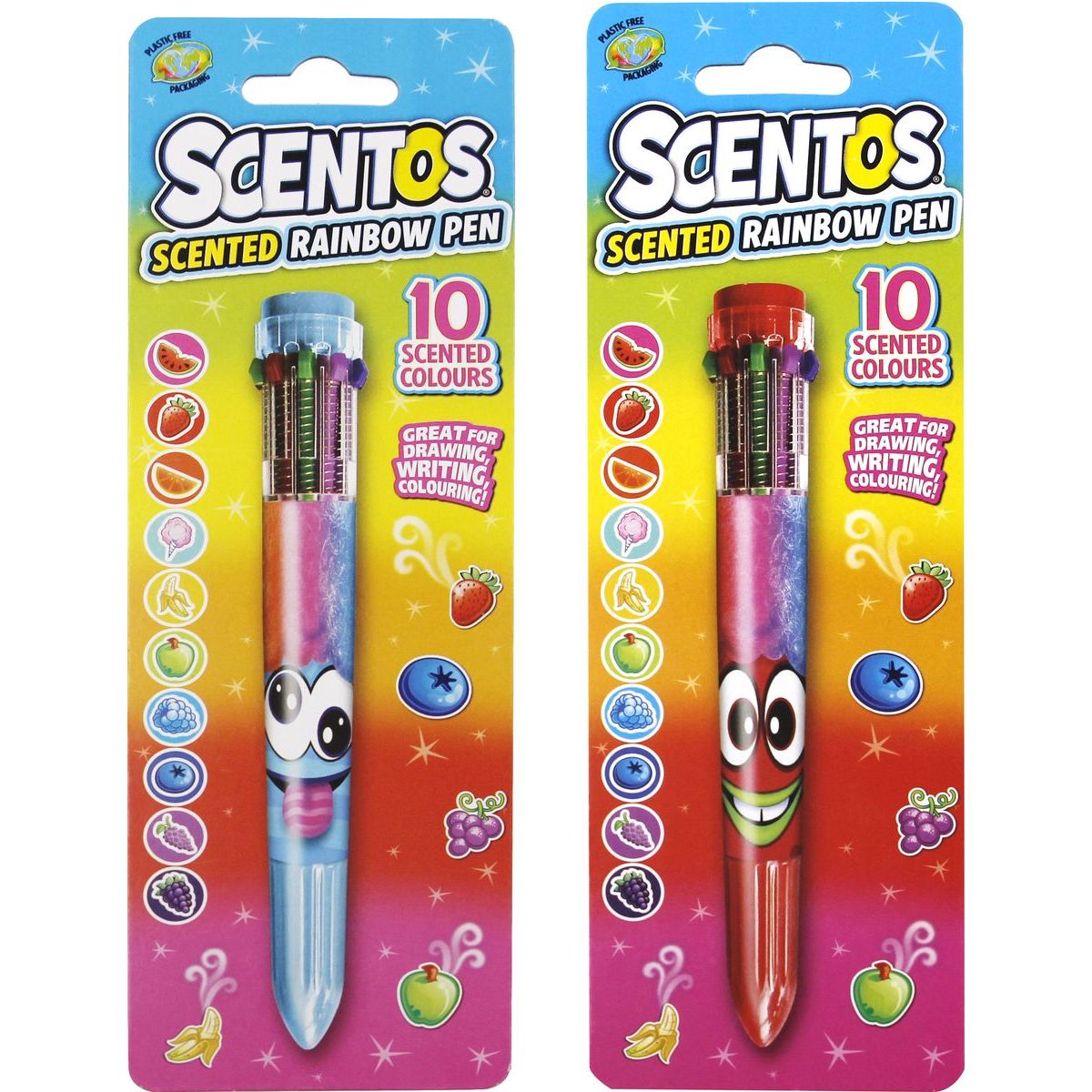 Krásne farby v jednej pere! Scentos zábavné pero, ktoré píše v niekoľkých dúhových farbách a navyše príjemne vonia. Skvelé na písanie, kreslenie, zvýrazňovanie alebo zdobenie poznámok. Farebné prechody dodajú každému riadku originálny vzhľad! Píše v niekoľkých farbách Ovocná vôňa pre zmyslový zážitok Netoxické a bezpečné pre deti Ideálne pre denníky, školské poznámky alebo kreatívne tvorenie