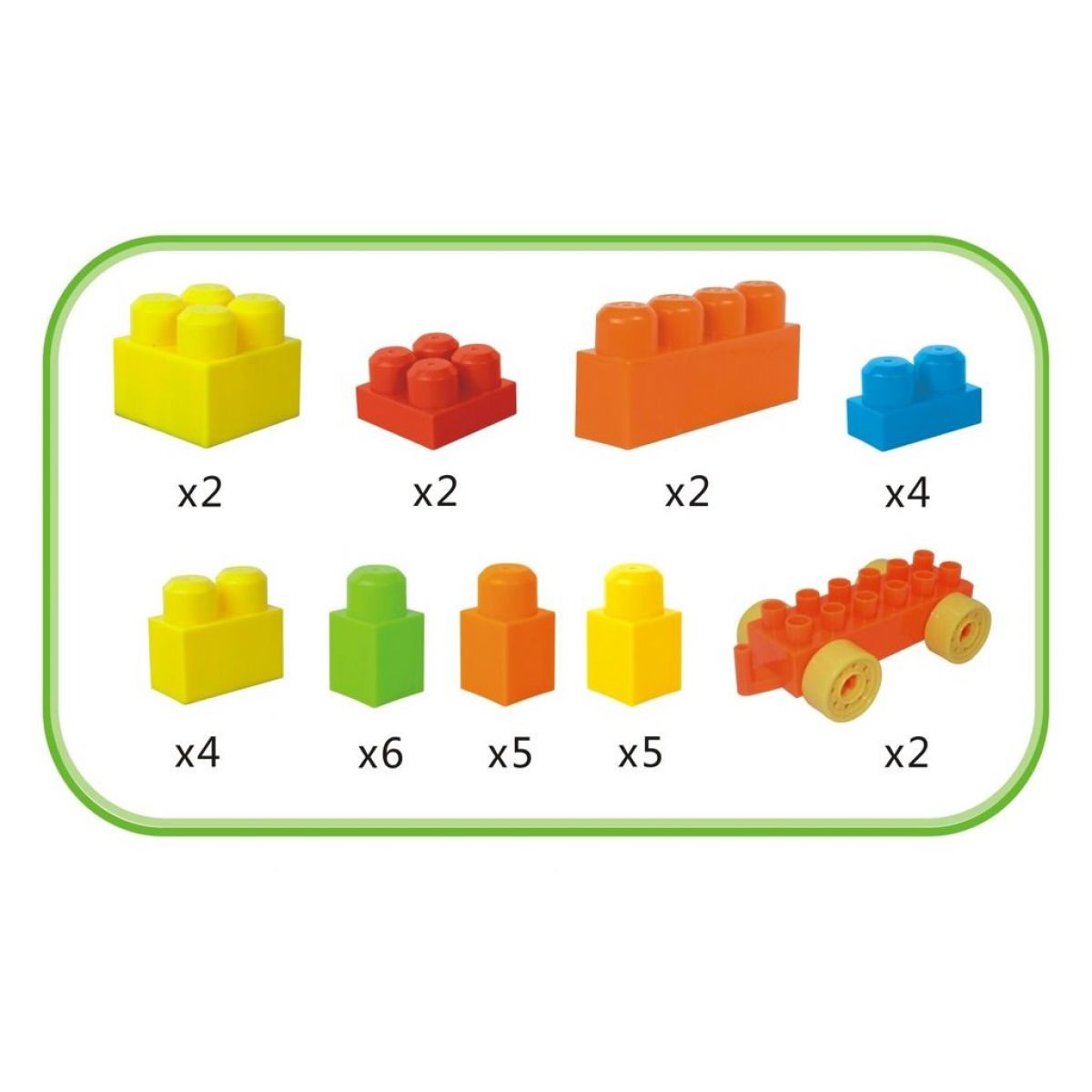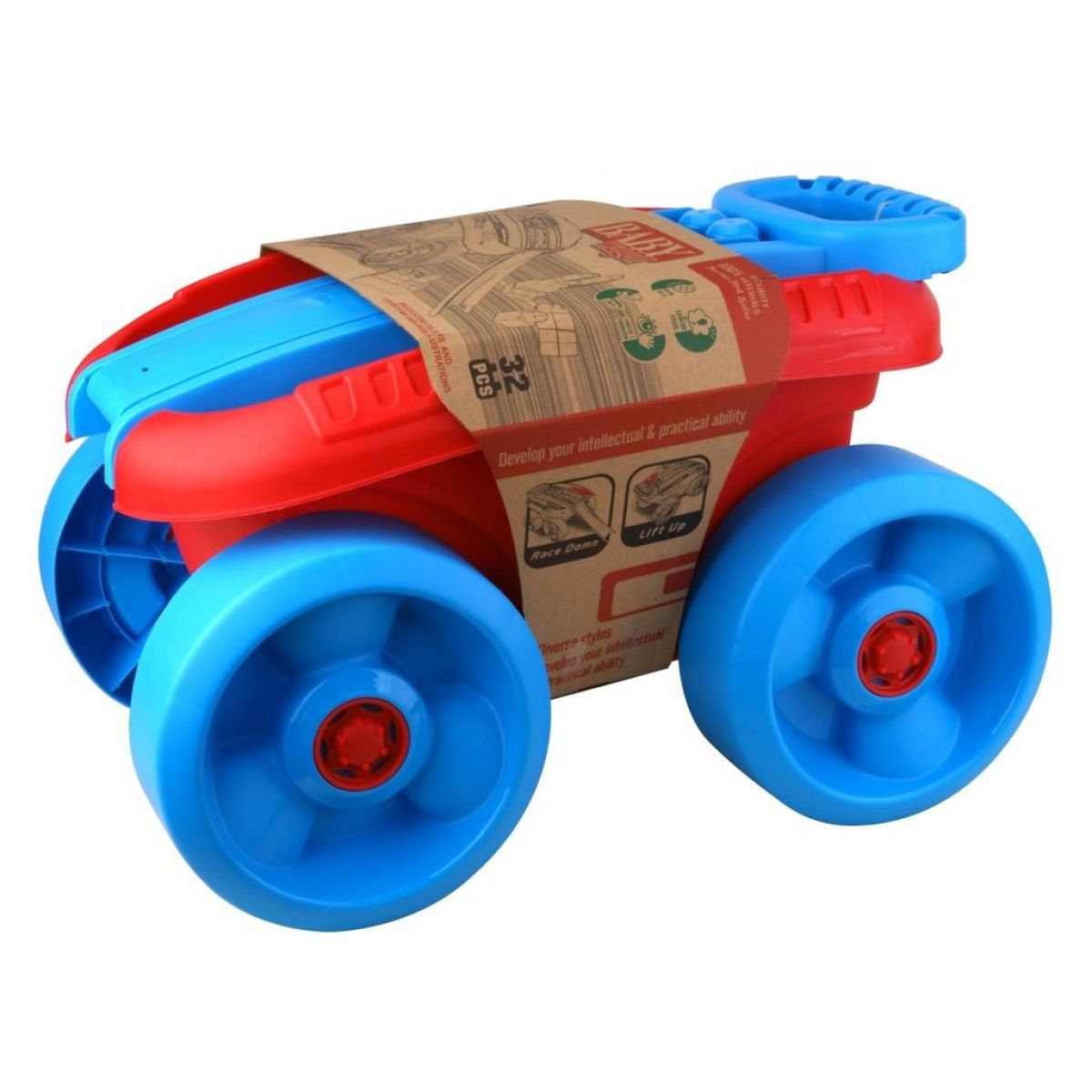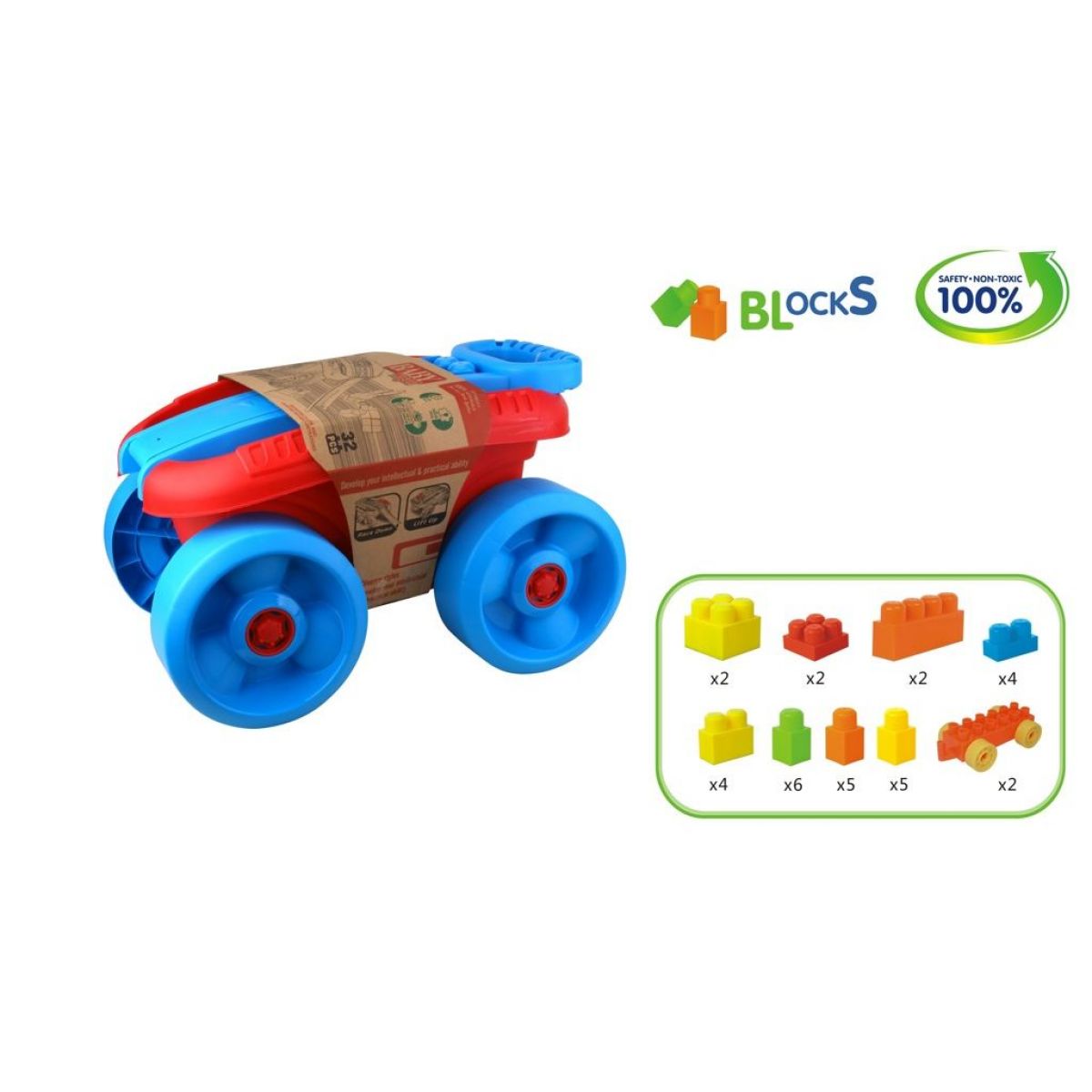 Mohutný červeno-modrý vozík s kockami. Pomáha v rozvoji detskej fantázie a po hre slúži vozík ako úložný priestor. Vďaka mohutnej konštrukcii je pre deti ľahko ovládateľný.