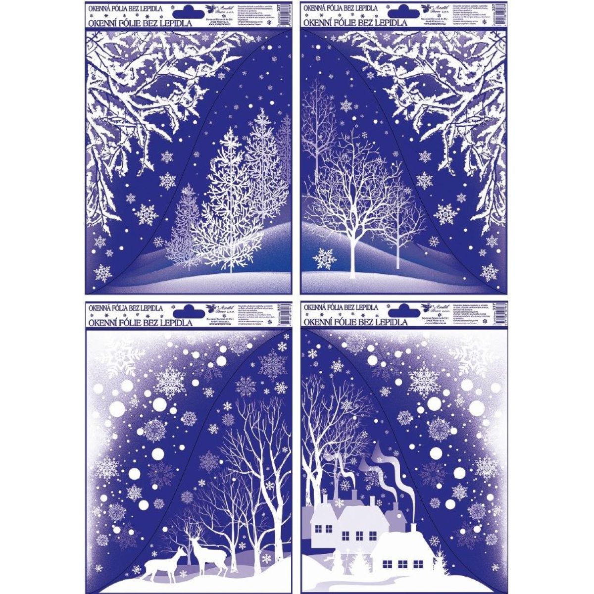Anděl Přerov Okenné fólie s rohovými glitrami Zimná krajina 38 x 30 cm