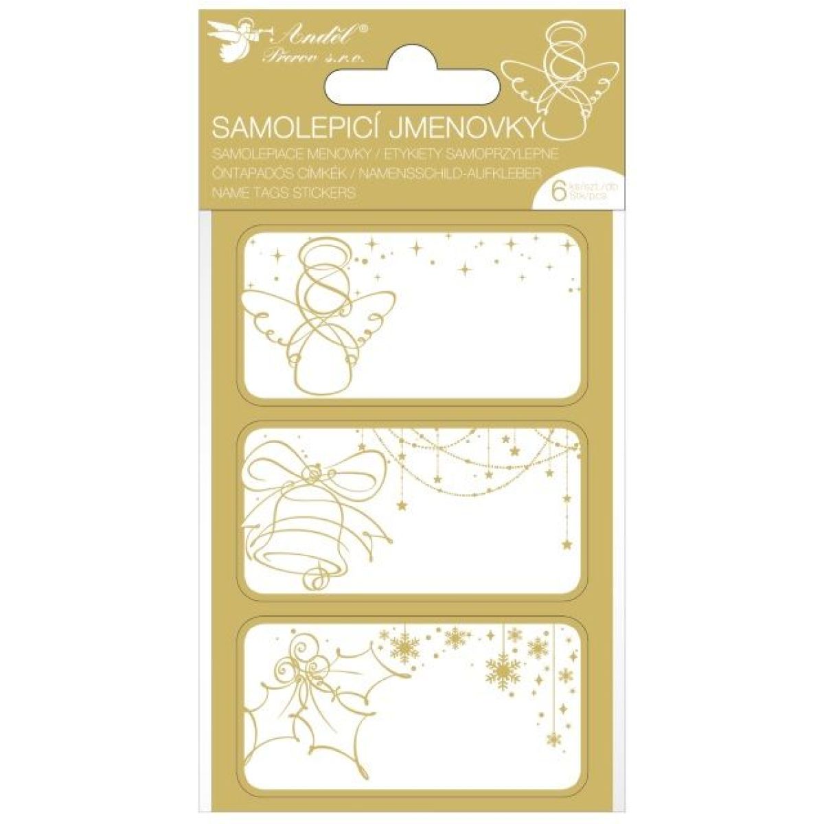 Anděl Přerov Samolepiace menovky na darčeky 8 x 16 cm so zlatou razbou, 6 ks