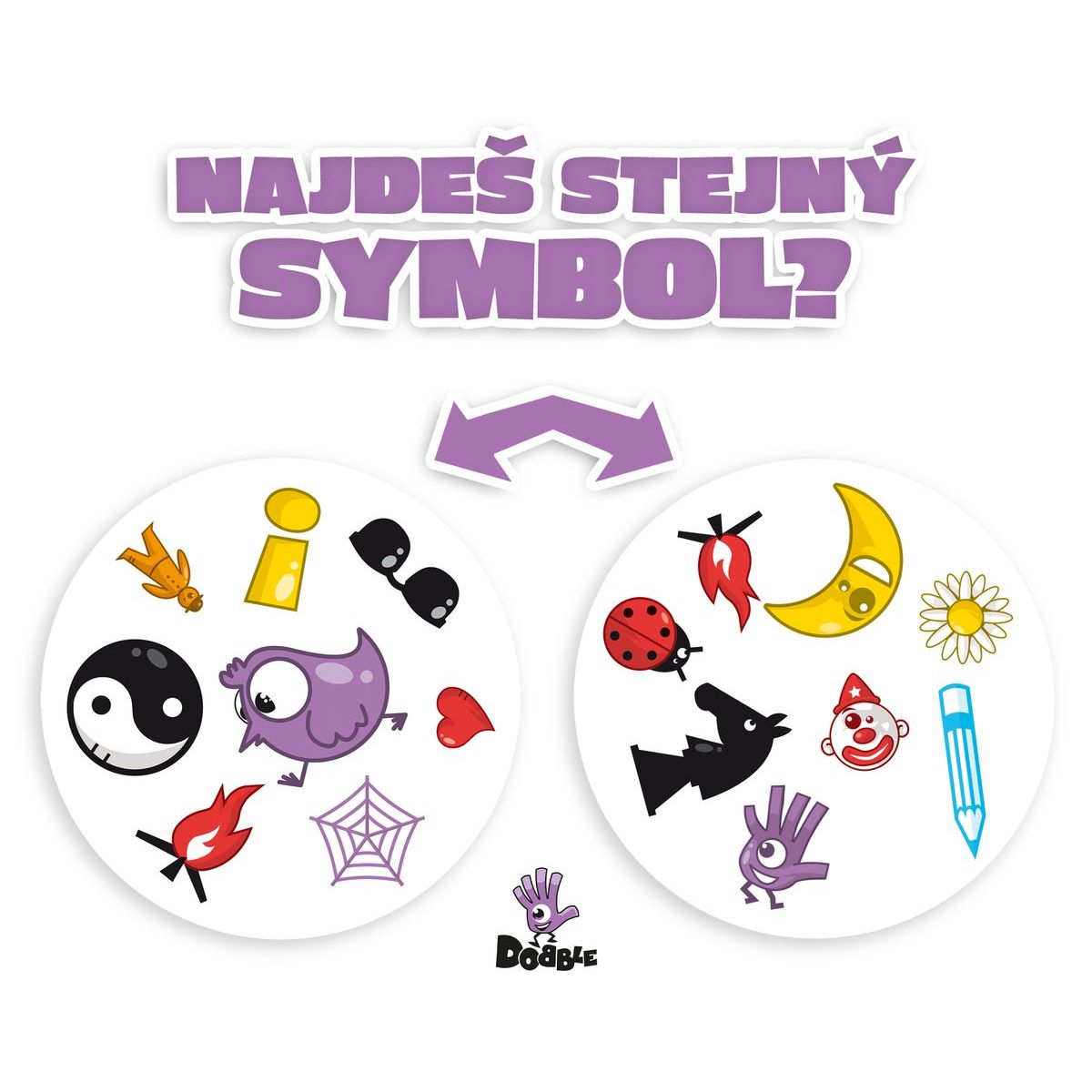 Dobble od ADC Hry je malá krabička plná veľkej zábavy. Stačí pár sekúnd, otočiť karty a hra sa môže začať. Každá karta obsahuje osem symbolov a medzi akýmikoľvek dvoma kartami sa vždy nachádza práve jeden rovnaký obrázok — kto ho nájde ako prvý, vyhráva.