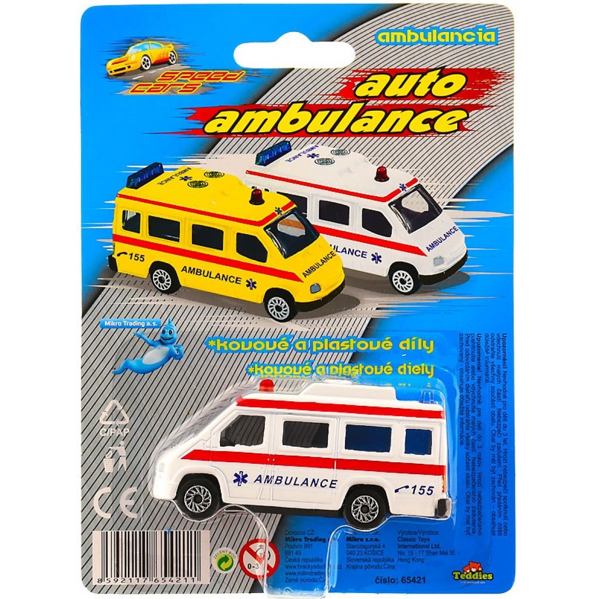 Záchranářský vůz ve žlutém provedení je vyroben z kovu s plastovými doplňky.