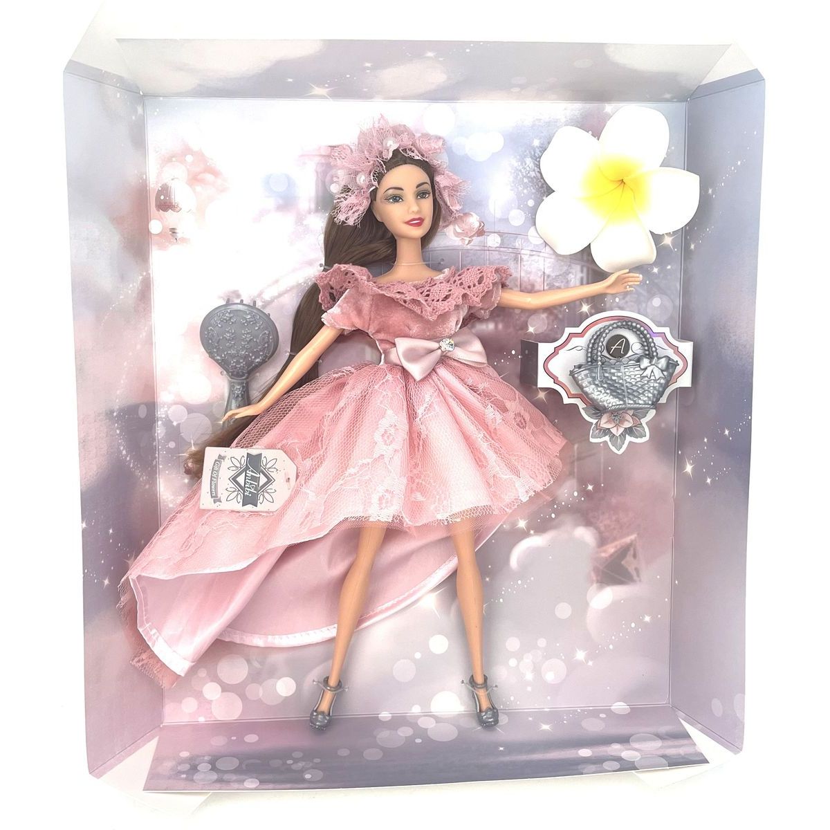 Roztomilá bábika vysoká cca 30 cm sa stane najlepšou kamarátkou každej malej slečny. Má krásne ružové šaty a jemné detaily, ktoré upútajú na prvý pohľad.