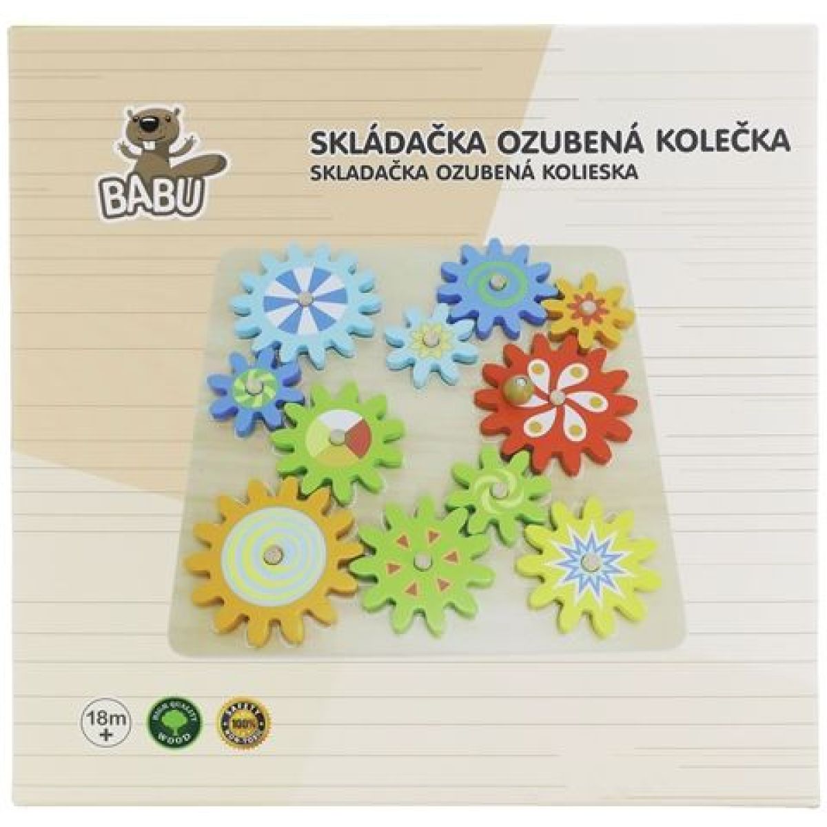 Babu Drevená hra s ozubenými kolieskami vtiahne deti do sveta pohybu a mechaniky. Stačí otočiť jedným kolieskom a ostatné sa dajú do pohybu – zábavná forma učenia, ktorá prirodzene rozvíja logické myslenie aj šikovnosť prstov.