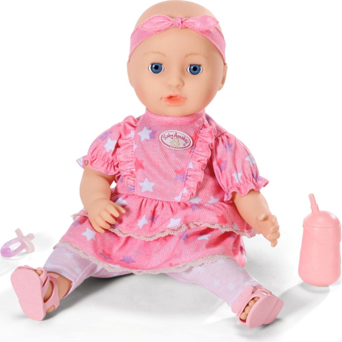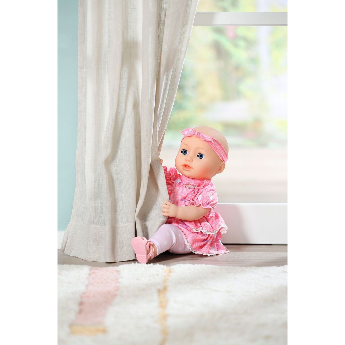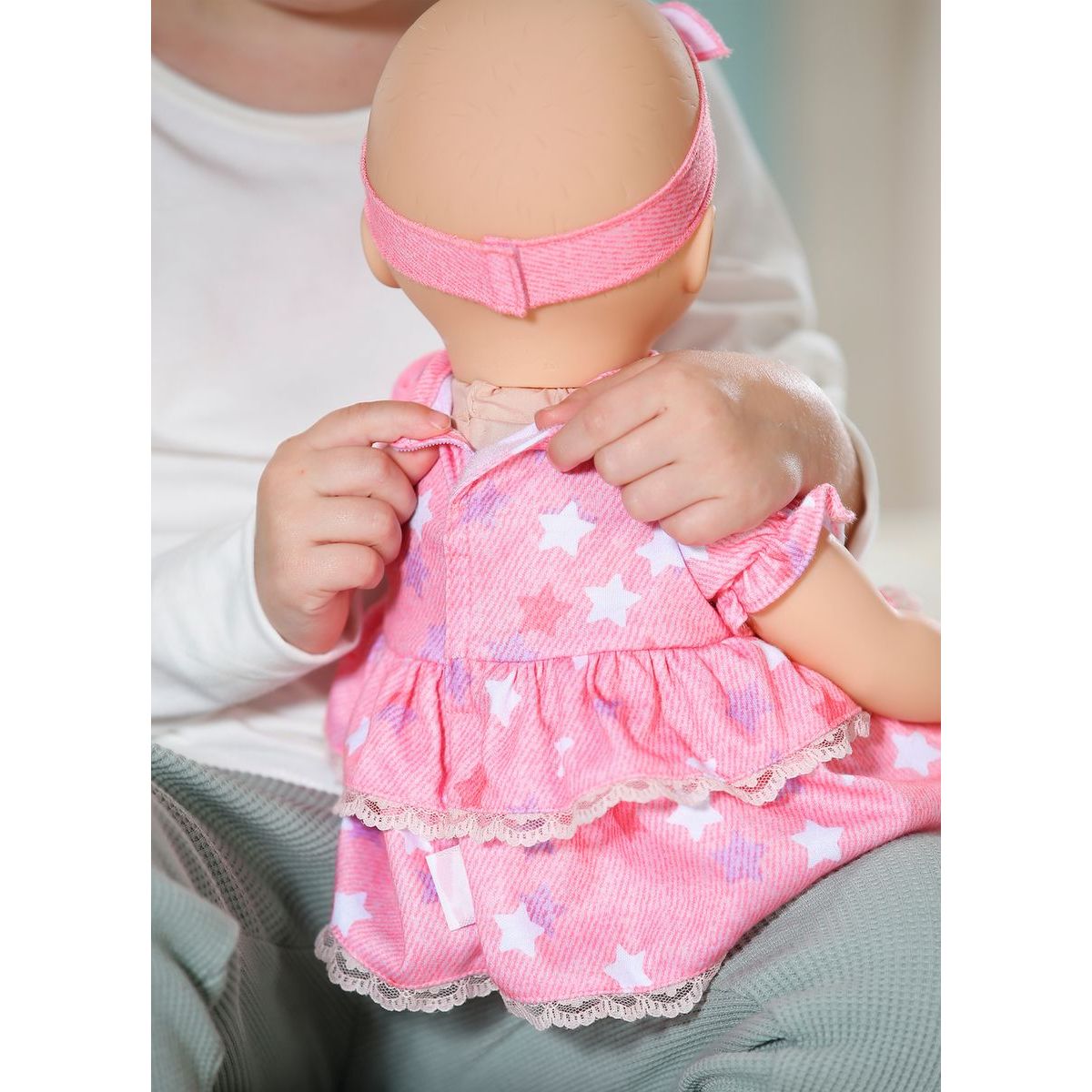 Má na sebe oblečené ružové šatôčky s krátkymi rukávmi a volánikovou sukienkou. Zdobené sú vzorom hviezdičiek, pod nimi má Mia svetlo ružové legíny a na hlave ružovú čelenku. Dievčatká ju môžu obliekať, ukolísať k spánku a kŕmiť.