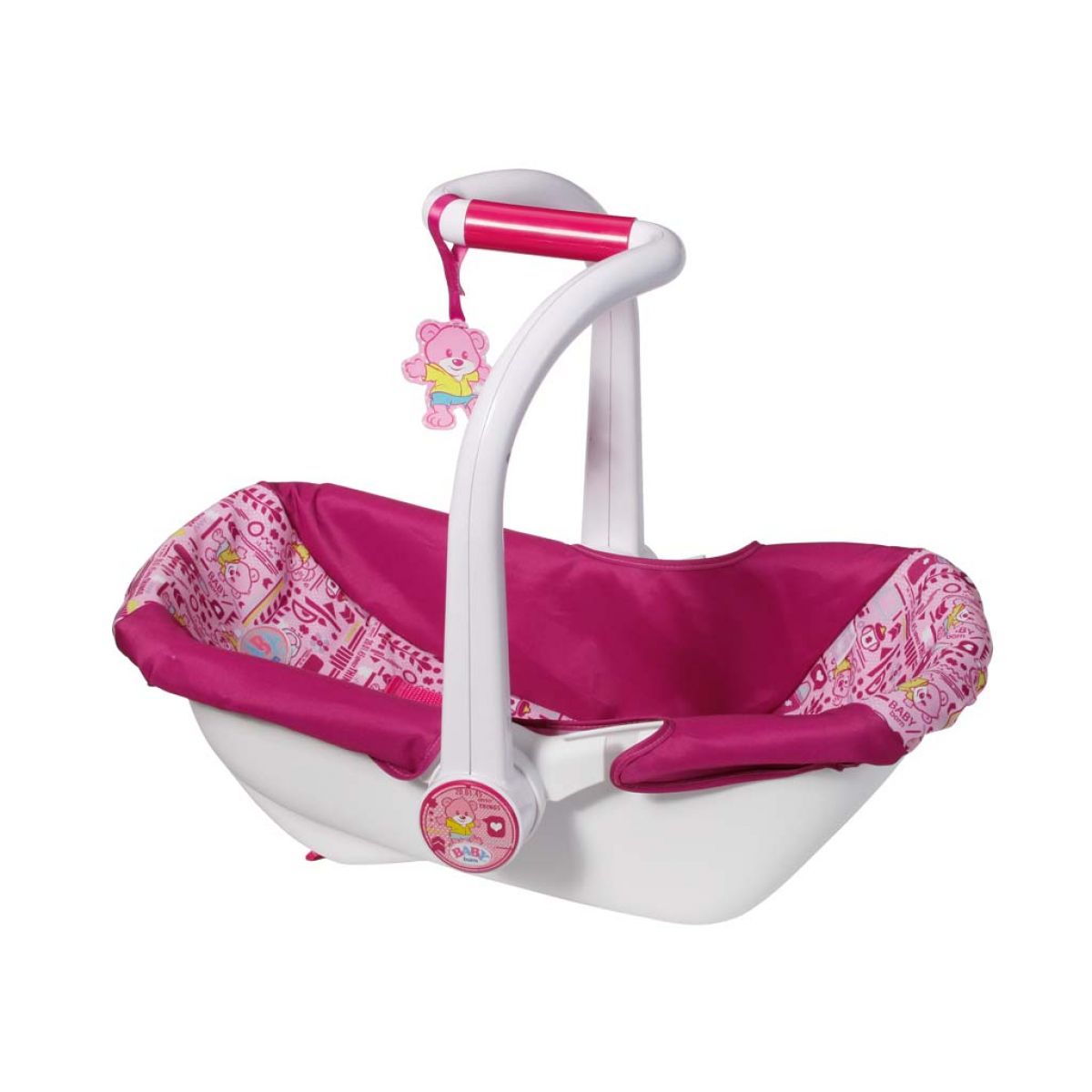 BABY born 819586 - BABY born® Přenosná sedačka. Praktická a pohodlná přenosná sedačka pro panenku BABY born (43 cm) s bezpečnostním pásem pro panenku. Možno použít i jako autosedačku. Sedačka je vyrobena z lehkého plastu, na kterém je potah z látky s motivy BABY born. Sedačka má zvlněné madlo pro pohodlné přenášení panenky BABY born.