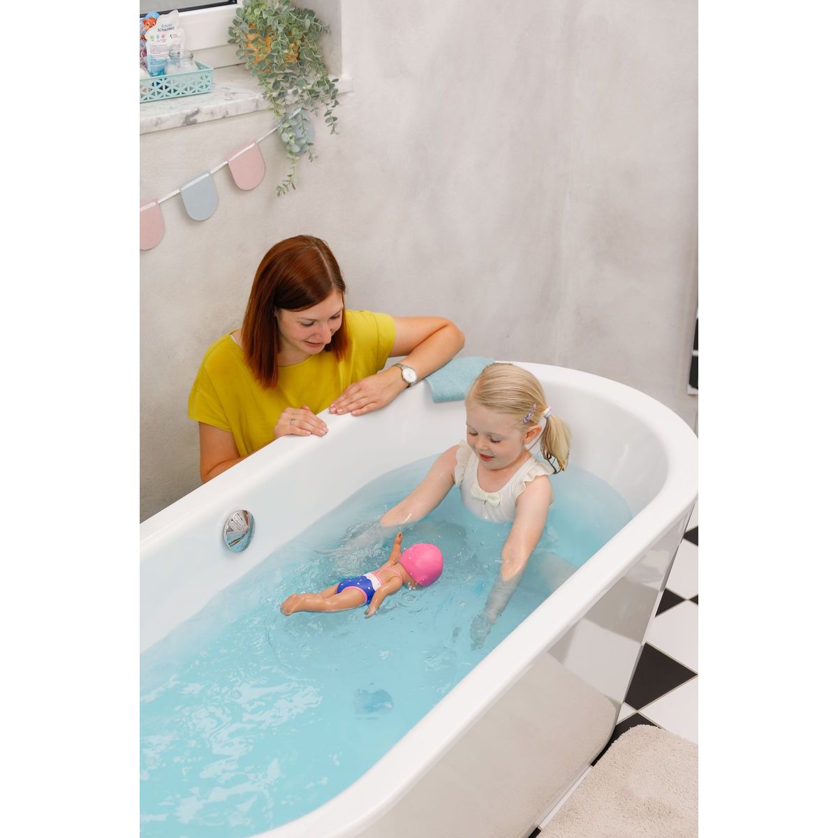 Bábika plavkyňa ukáže vo vode dievčatkám ako vie plávať v štýle kraul a motýlika.