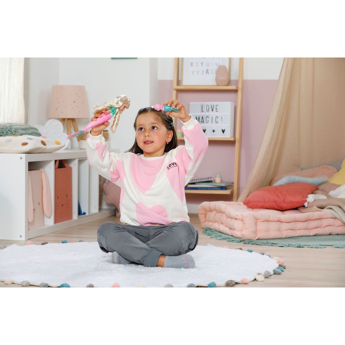 Jemné farby, trblietavé detaily a milý vzhľad podporujú zmyslové vnímanie aj prirodzenú detskú zvedavosť. Bábika je prispôsobená malým ručičkám, aby sa s ňou deťom hralo jednoducho a bezpečne už od útleho veku.