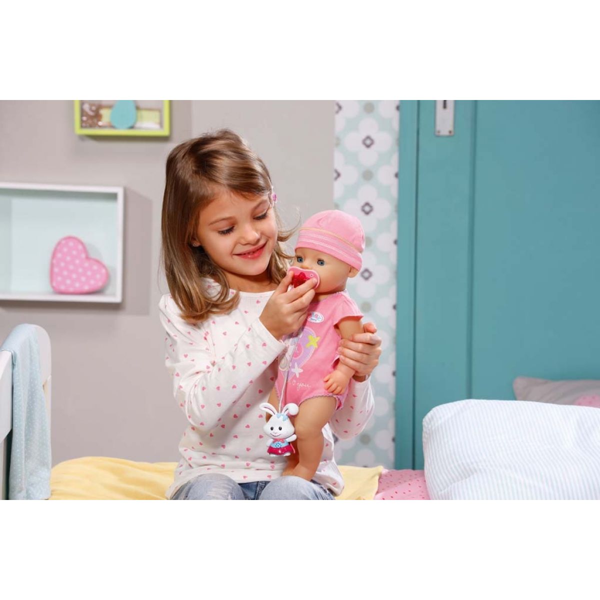 Interaktívny dudlík v tvare králička, ktorý keď vložíte bábike do pusinky, tak mlaská, a tak bábika vďaka dudlíčku pôsobí ešte viac ako živé bábätko. Dudlík navyše svieti a je vybavený sponkou.