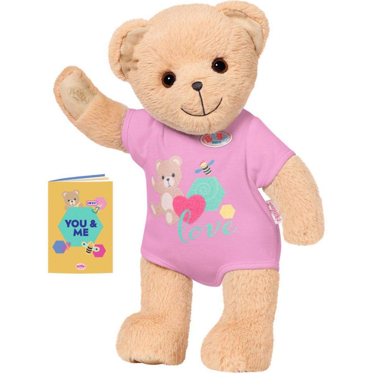 Je oblečená do slušivého ružového oblečku. Ďalšie oblečky a doplnky sú v ponuke samostatnej módnej kolekcie, ktorú môže využívať aj bábika Baby Born veľkosti 36 cm.