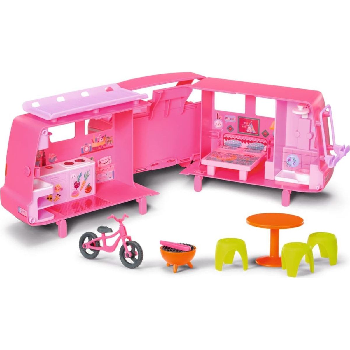 Bábika Jasmin má pripravené v balení aj veľké ružové obytné auto.