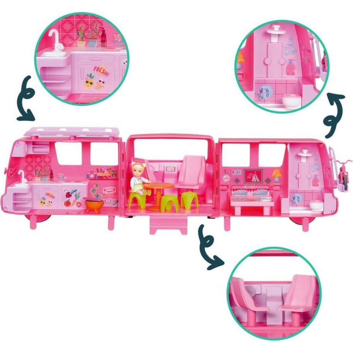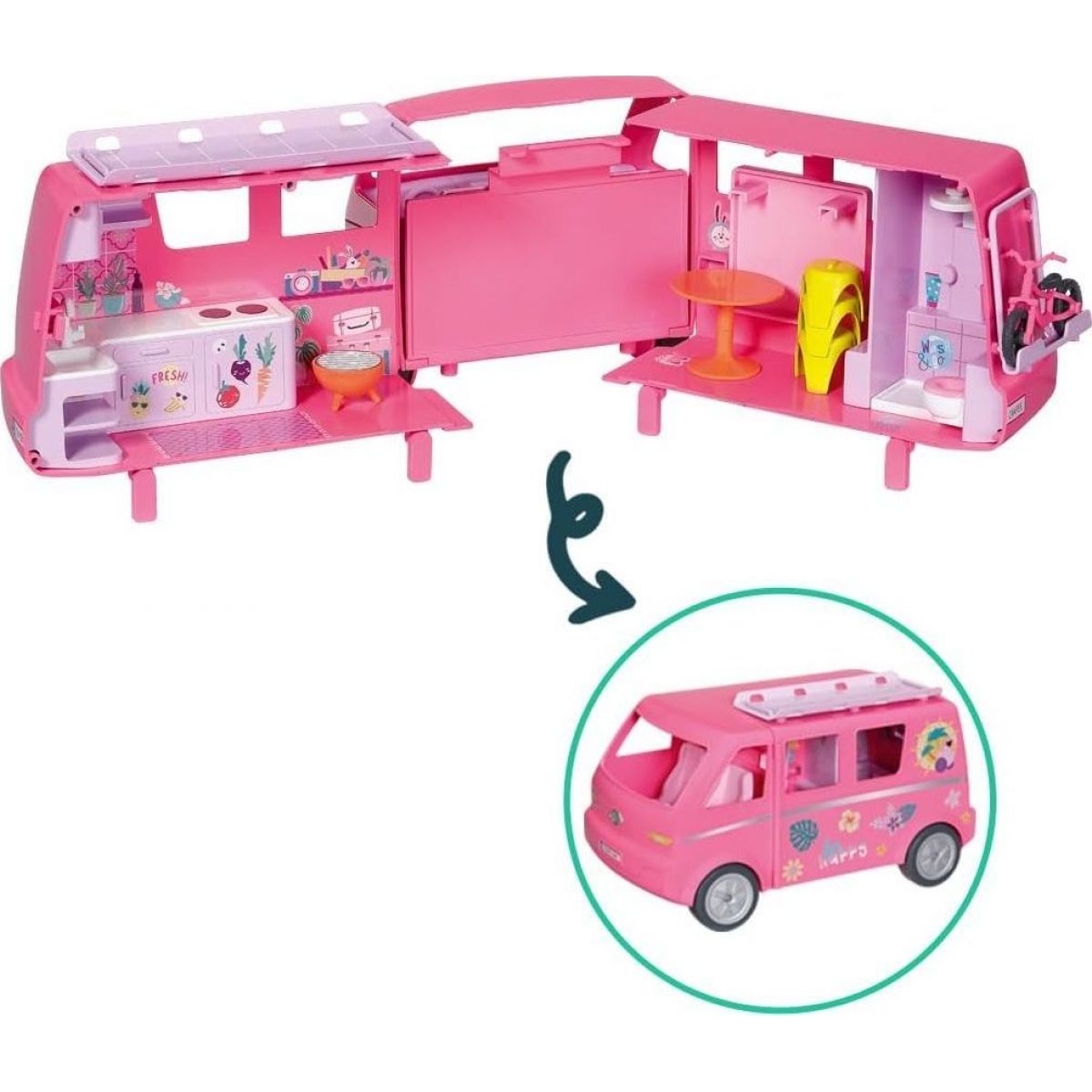 Dievčatká môžu milú bábiku usadiť za volant dodávky a vyraziť s ňou na dobrodružný výlet do prírody. Po zaparkovaní auta môžu využiť všetko vybavenie uložené vo vnútri auta, pre príjemný relax.