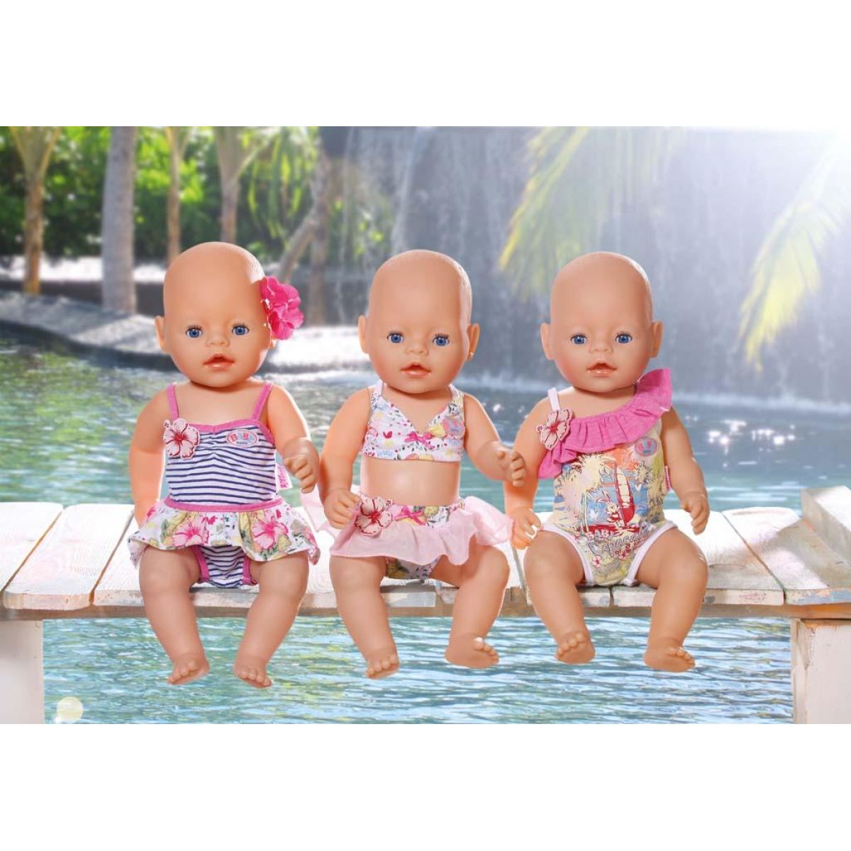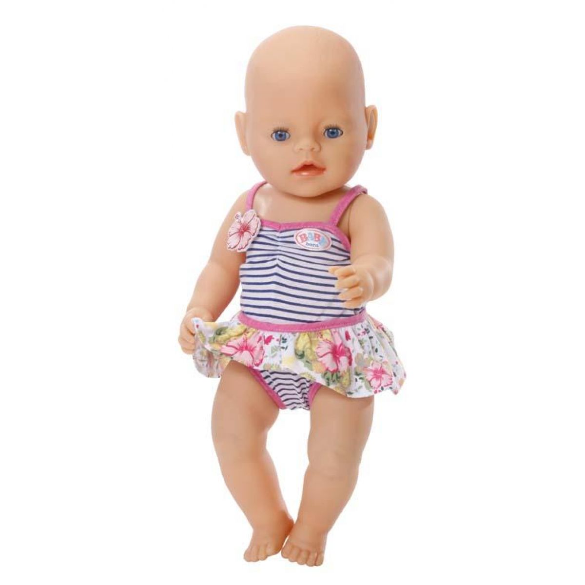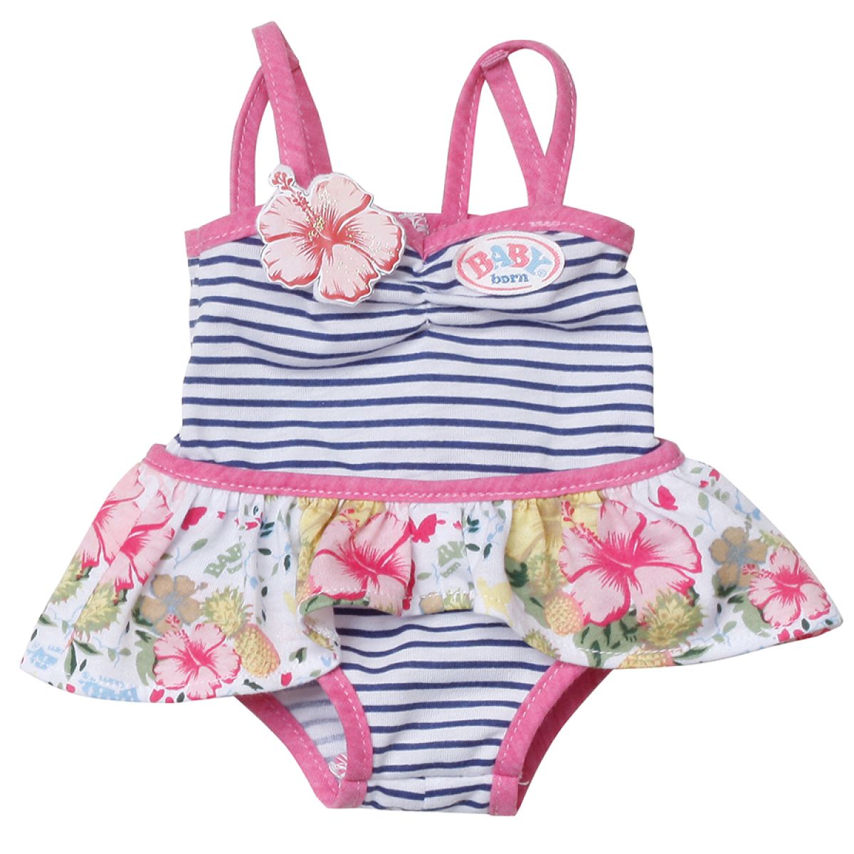 Jednodílné plavky s modrými pruhy pro panenky Baby Born. Určeno pro panenky o velikosti 43 cm.