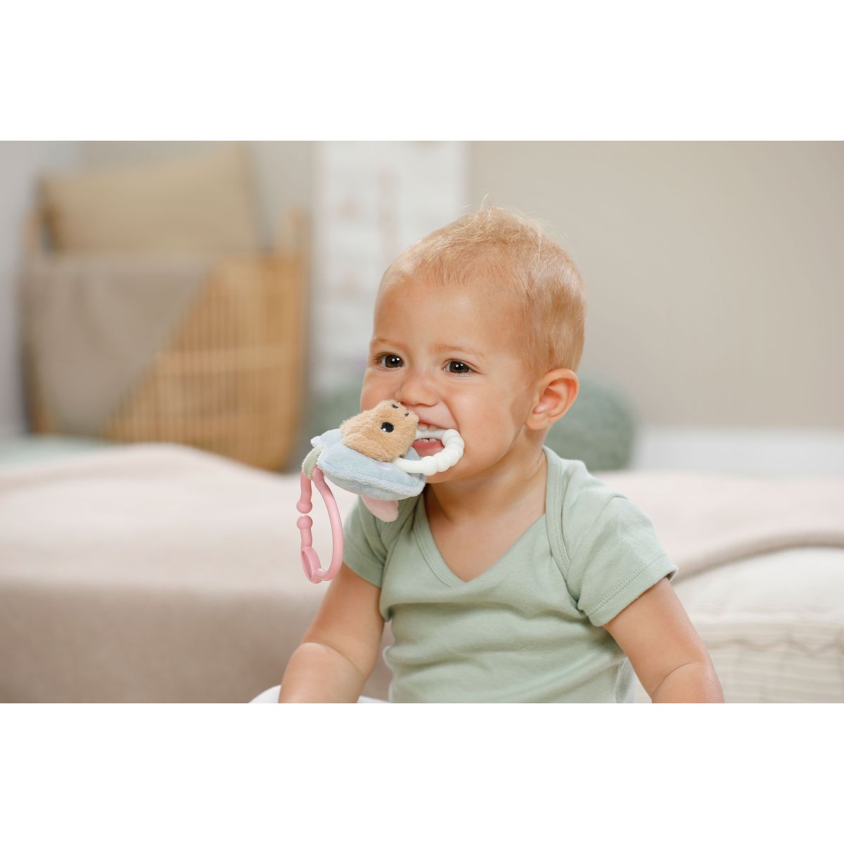 S tvárou medvedíka, praktickým kúsatkom a pískacím zvukom podporuje rozvoj zmyslov a zároveň uľavuje ďasnám pri prerezávaní zúbkov. Vďaka klipu ho môžete ľahko pripnúť všade, kde ho dieťatko potrebuje mať poruke.
