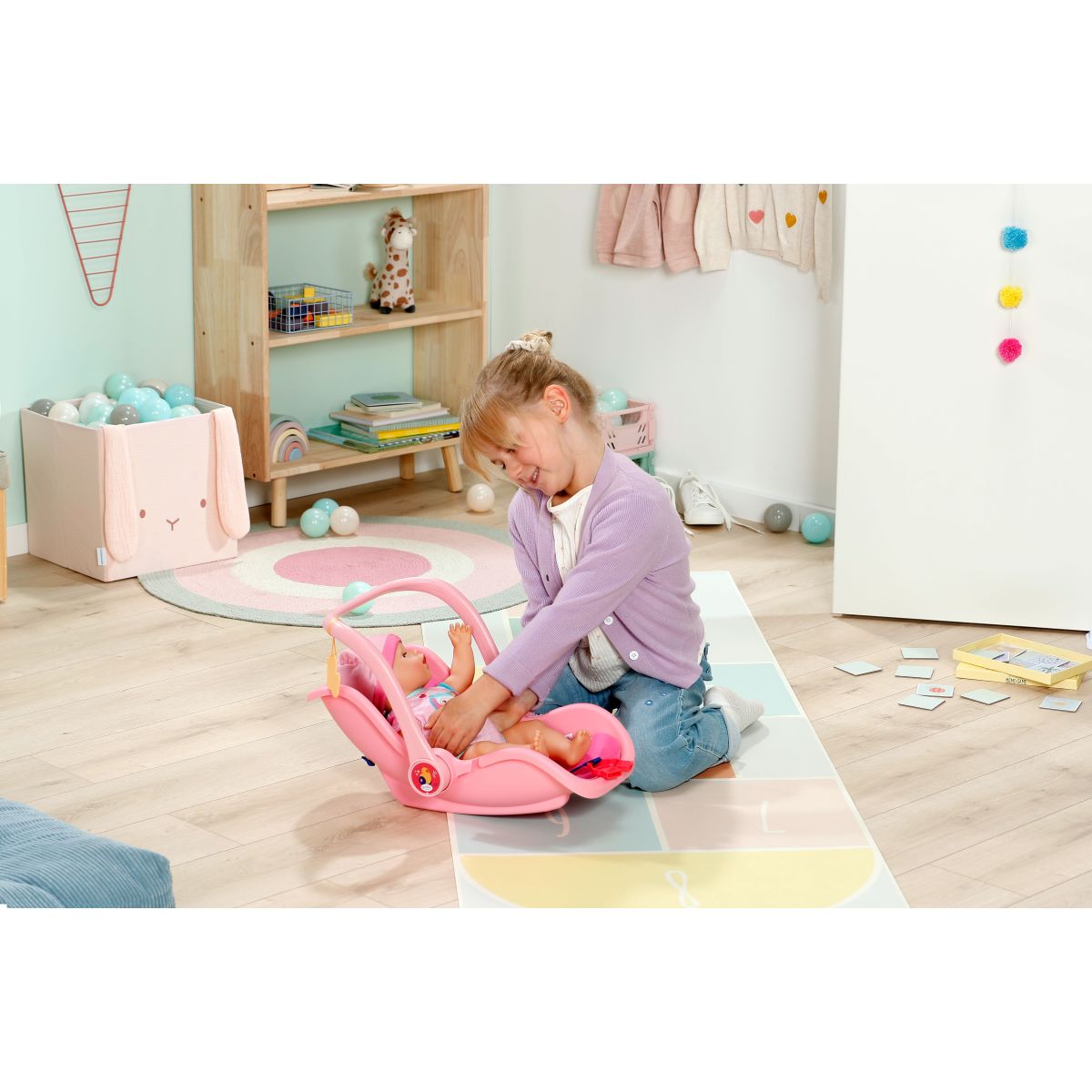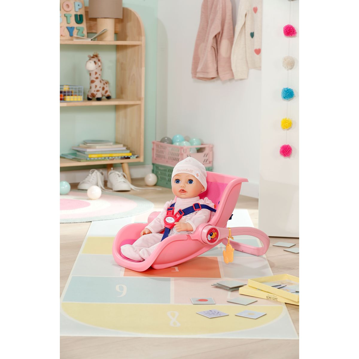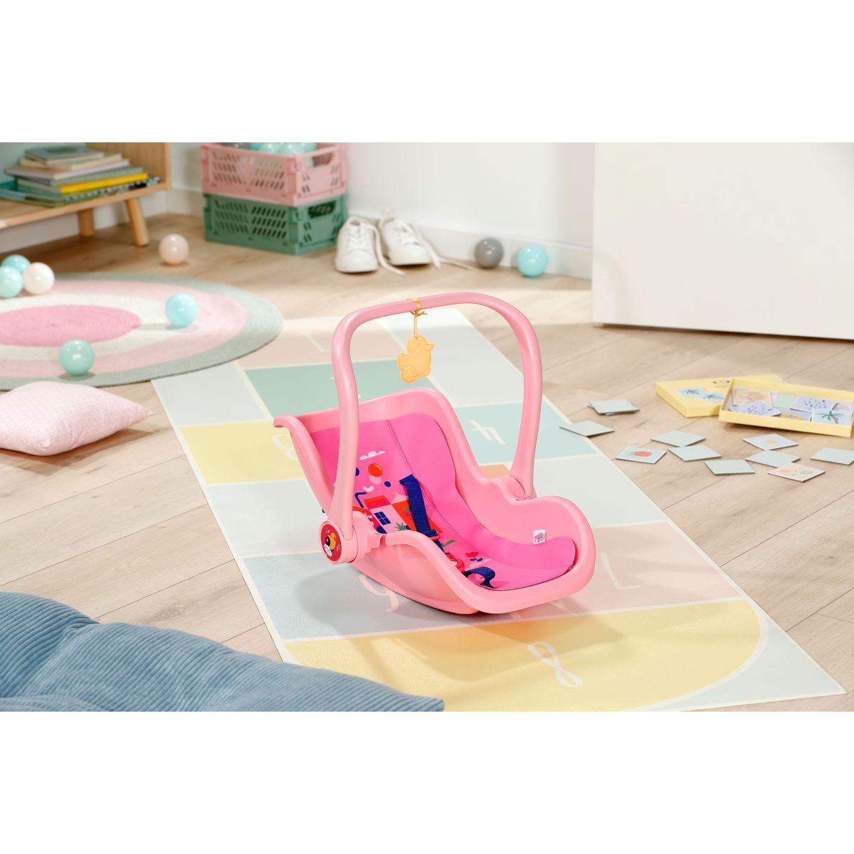 Ružová prenosná sedačka BABY born Domček prináša pohodlie a bezpečie pre tvoju bábiku počas hry aj na cestách.