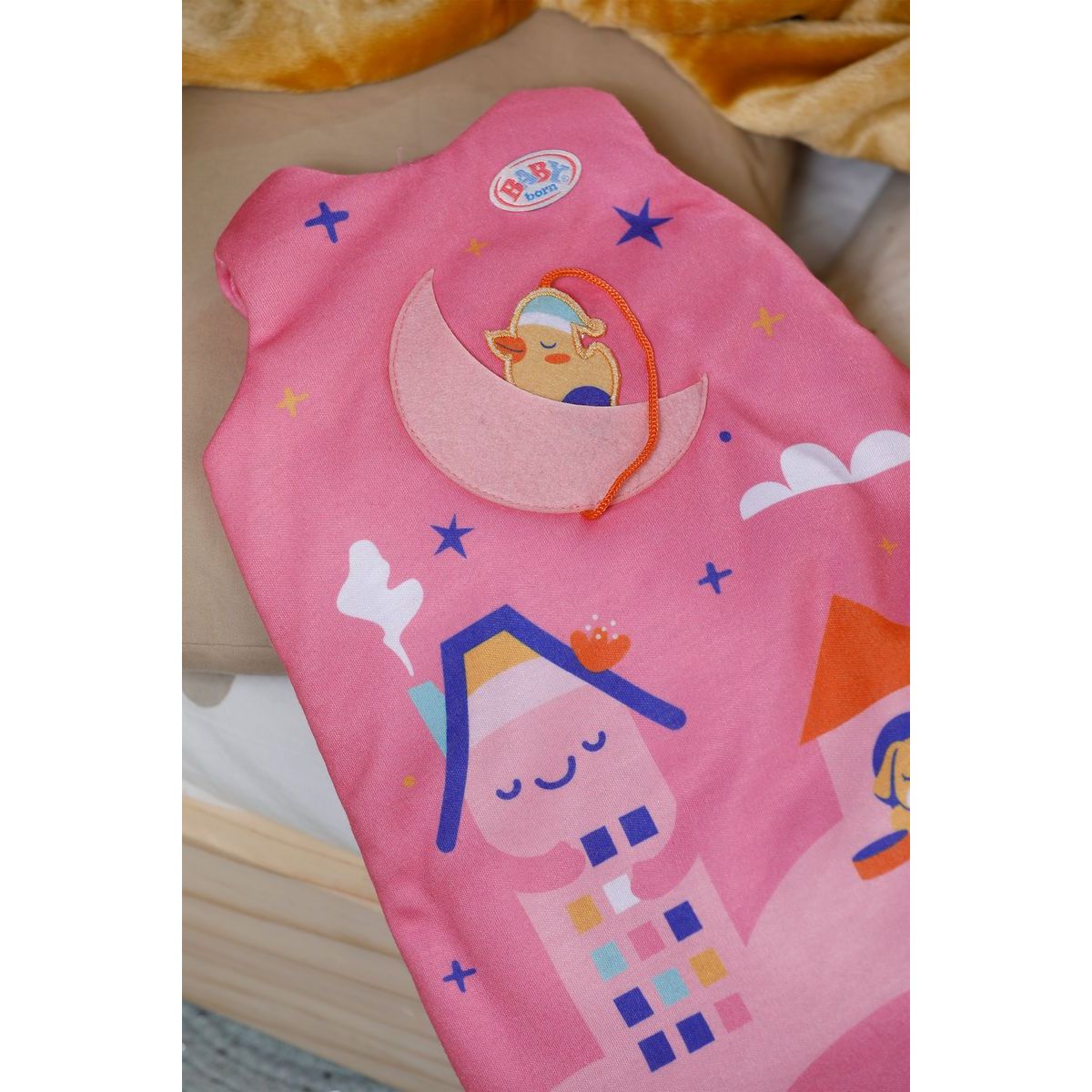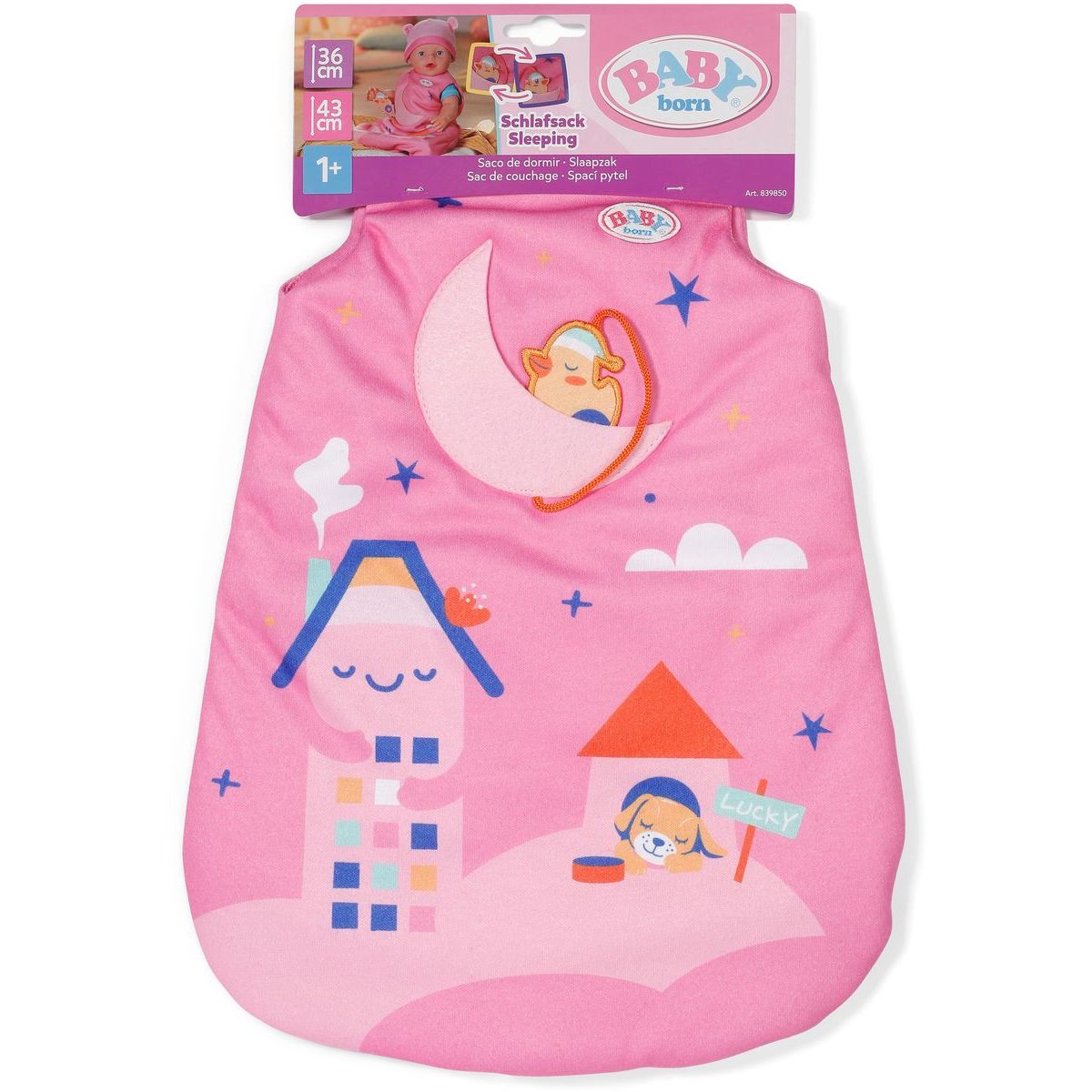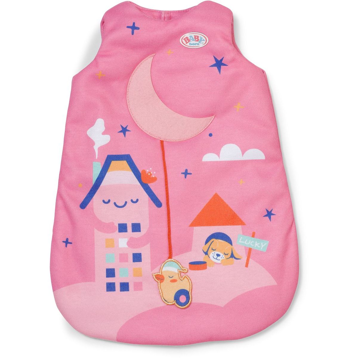 Pripraviť, pozor, dobrú noc! S týmto kúzelným spacím vakom sa rituál ukladania na spánok stane najobľúbenejšou časťou dňa. Spací vak s motívom usmievavého mesiaca obklopí bábiku BABY born do nebeského pohodlia a mäkkosti. Aby sa bábike lepšie zaspávalo, robí jej spoločnosť malá žltá kačička na šnúrke, ktorá na ňu celú noc dohliada.
