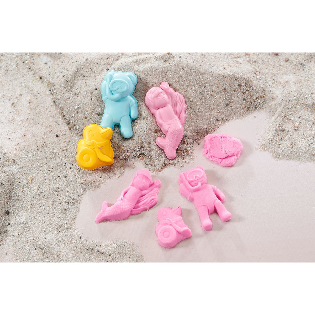 Bábika v lesklých plavkách s motívom morskej panny je pripravená na veľa zábavy s kinetickým pieskom, ktorý drží svoj tvar a nezanecháva neporiadok.