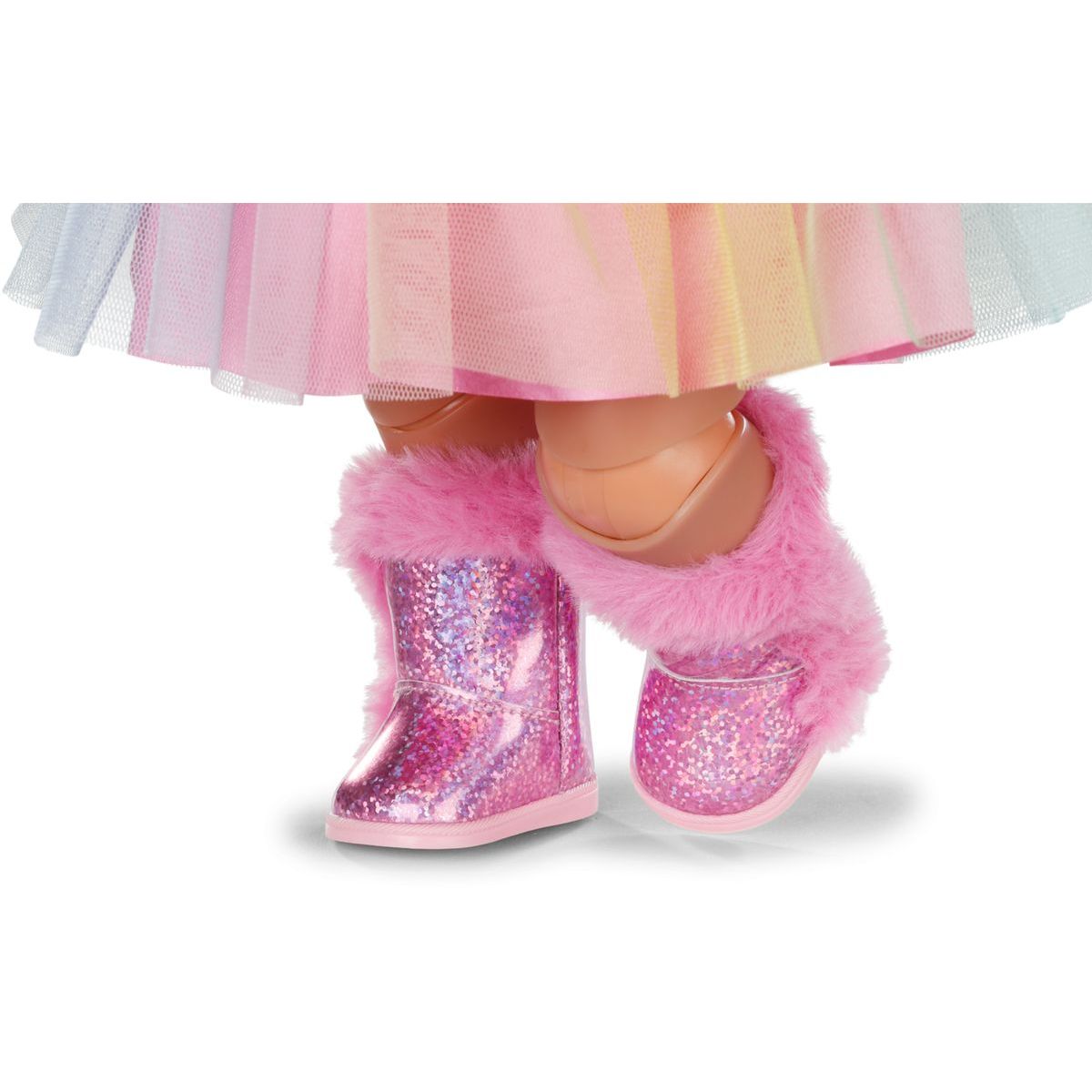 K dispozícii sú v modrej a ružovej farbe a ich chlpatý vnútorný materiál zahreje nožičky bábiky počas hry aj oddychu.