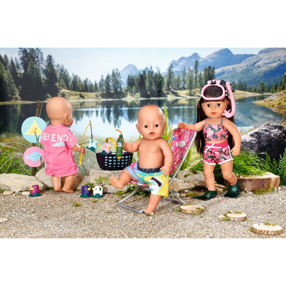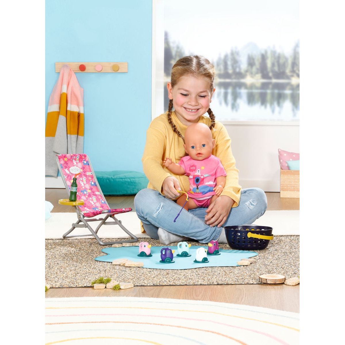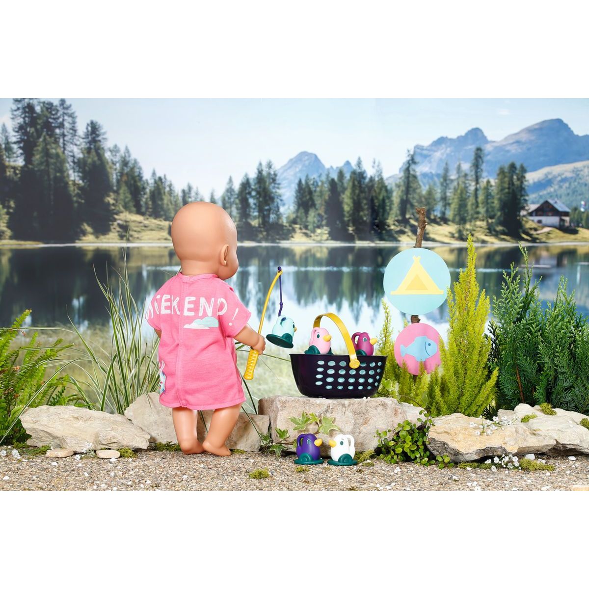 Súprava pre rybárčenie spestrí dievčatkám hru s bábikou Baby Born 36 a 43 cm veľkú.