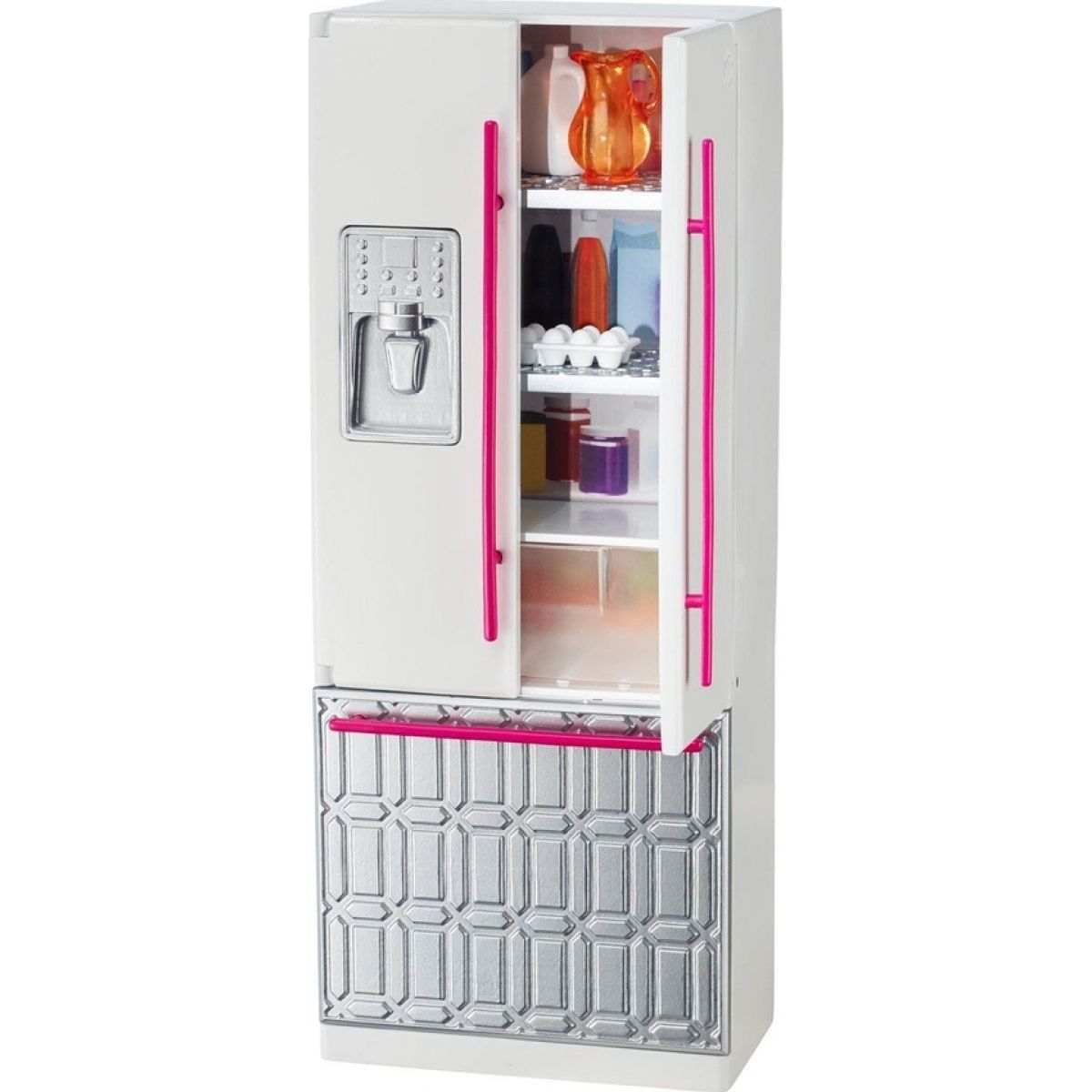 Tento set obsahuje ledničku, která má otevíratelná dvířka. V ledničce naleznete mléko, vajíčka a džbán na vodu.