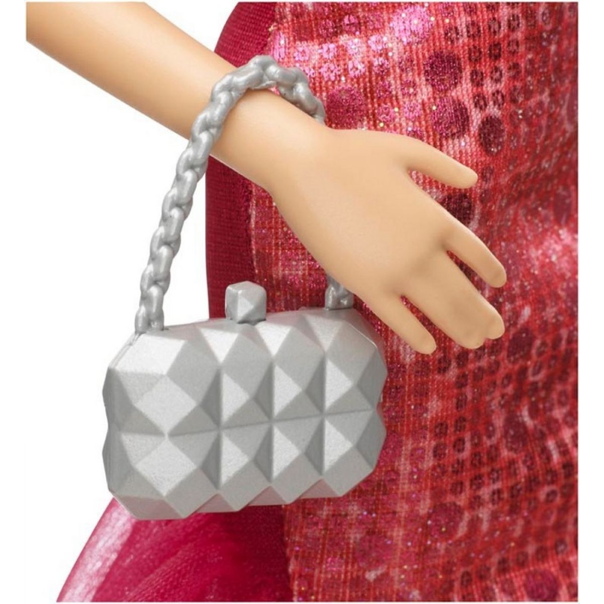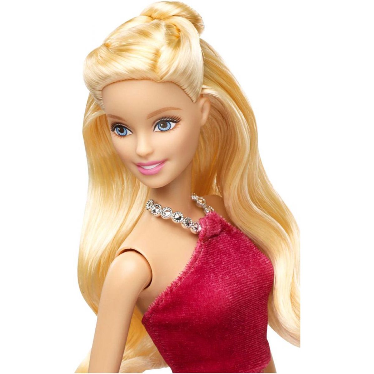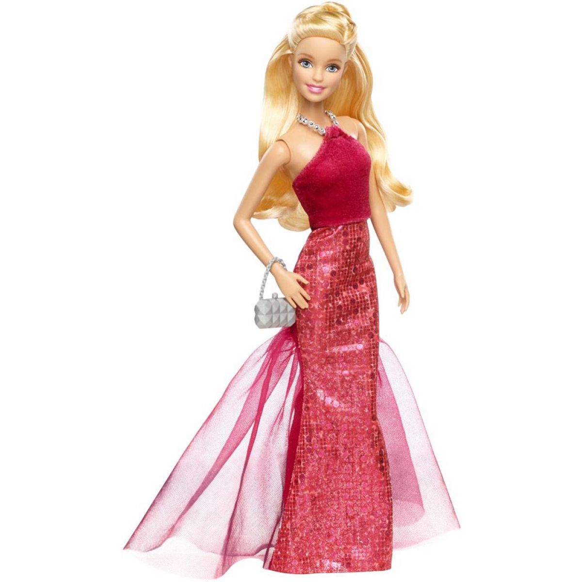 Krásná panenka Barbie v luxusní večerní róbě. Krásné růžové šaty s detaily panence moc sluší.