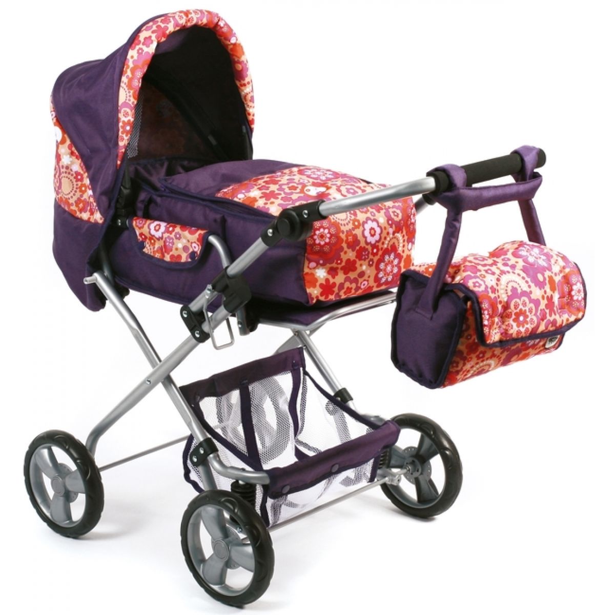 Klasická trojkombinace kočárku. Hluboký, sportovní kočárek a taška na přenášení panenky. Kočárek je lehký, ale přitom dost velký, aby s holčičkou "rostl" i díky nastavitelné rukojeti. (Rozpětí 40 - 80 cm.) Boudička je polohovatelná, s oknem, taška na přenášení panenky se dá zcela rozepnout. Na podvozku je připevněn nákupní košík. Ke kočárku patří přebalovací taška, která je uchycená na madle kočárku a lze nosit samostatně.