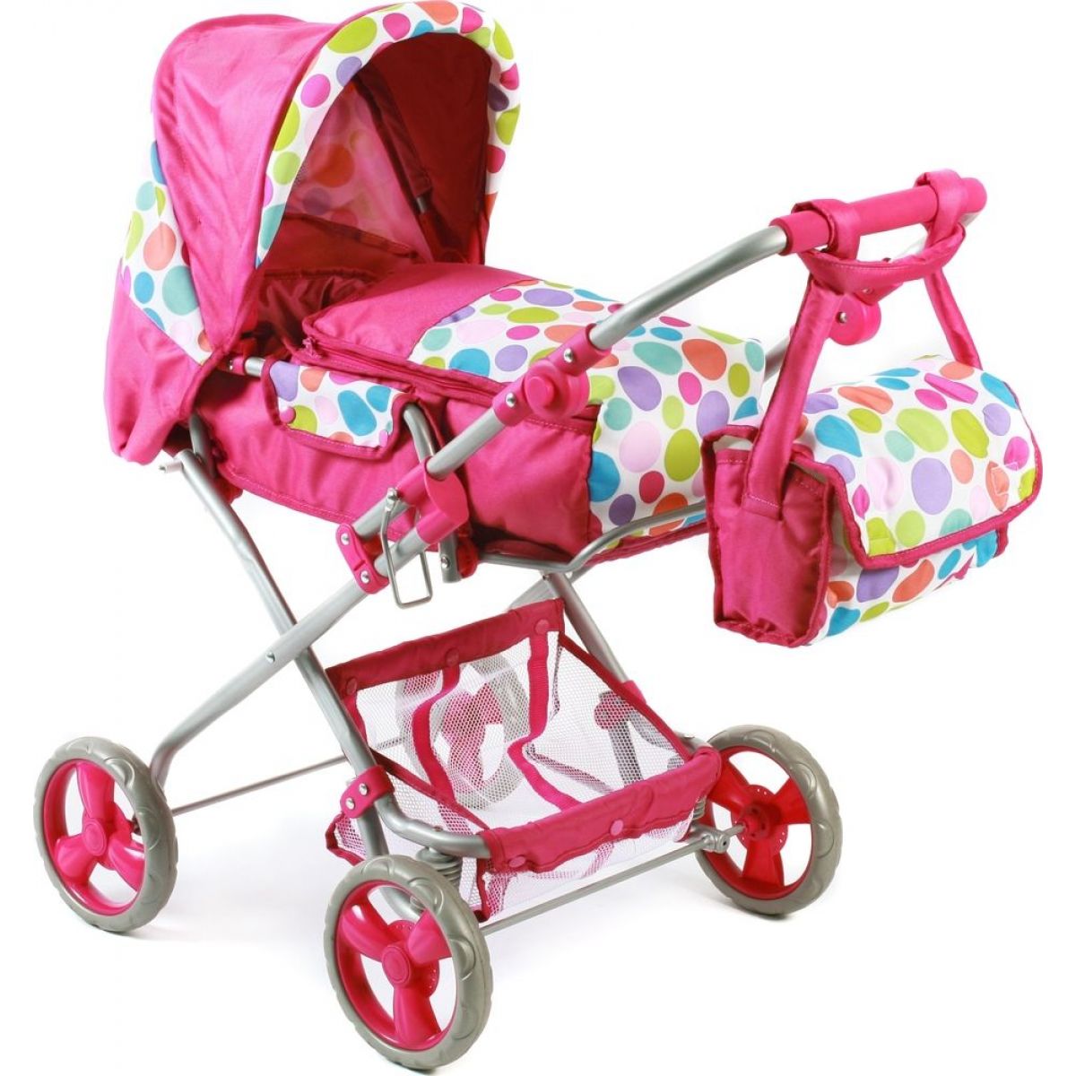 Kombinovaný kočík pre bábiky - trojkombinácia. Kočík má nastaviteľnú rukoväť v rozpätí cca 41-64 cm. V polohovateľnej strieške je okienko. Vyberateľnú tašku, ktorá je súčasťou kočíka, je možné použiť aj samostatne ako tašku na bábiku. Kočík má naspodku konštrukcie košík na uloženie drobností. Pre výrobok je zaistený záručný aj pozáručný servis a predaj náhradných dielov.