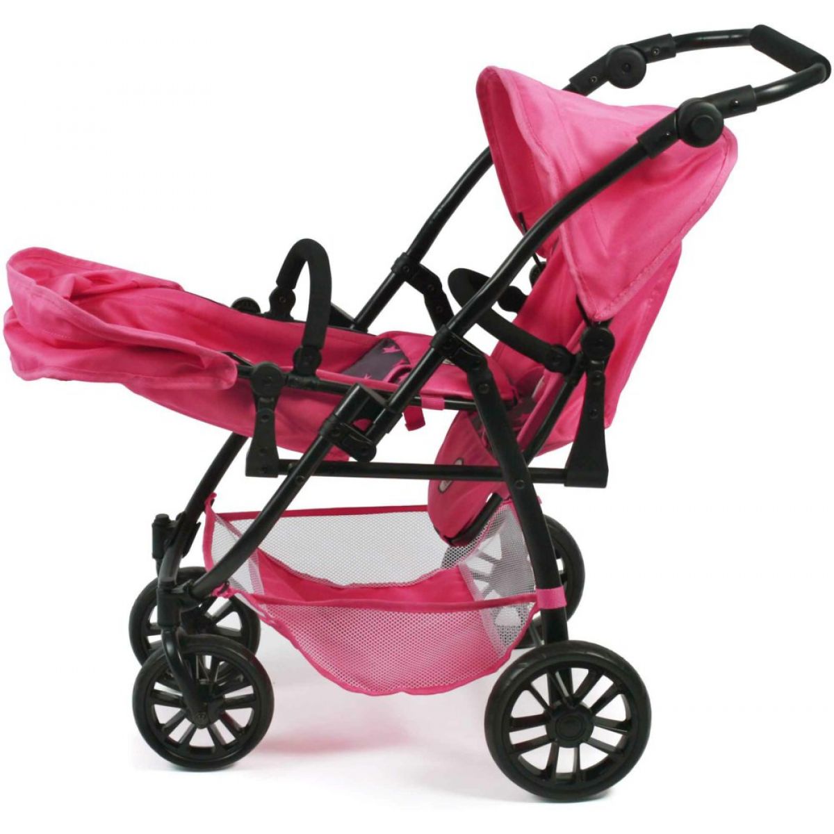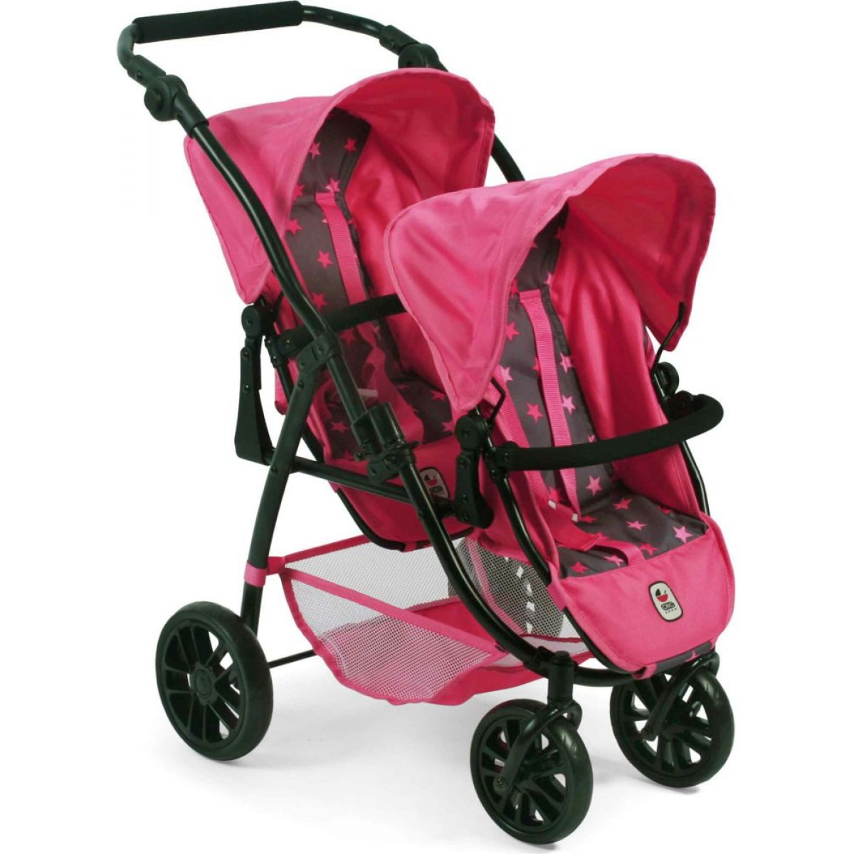 Jedinečný praktický kočárek pro dvě panenky (dvojčata) si vaše holčička jistě zalíbí. S tímto kočárkem bude mít možnost chodit na procházku se svýma oblíbenými panenkami najednou.
