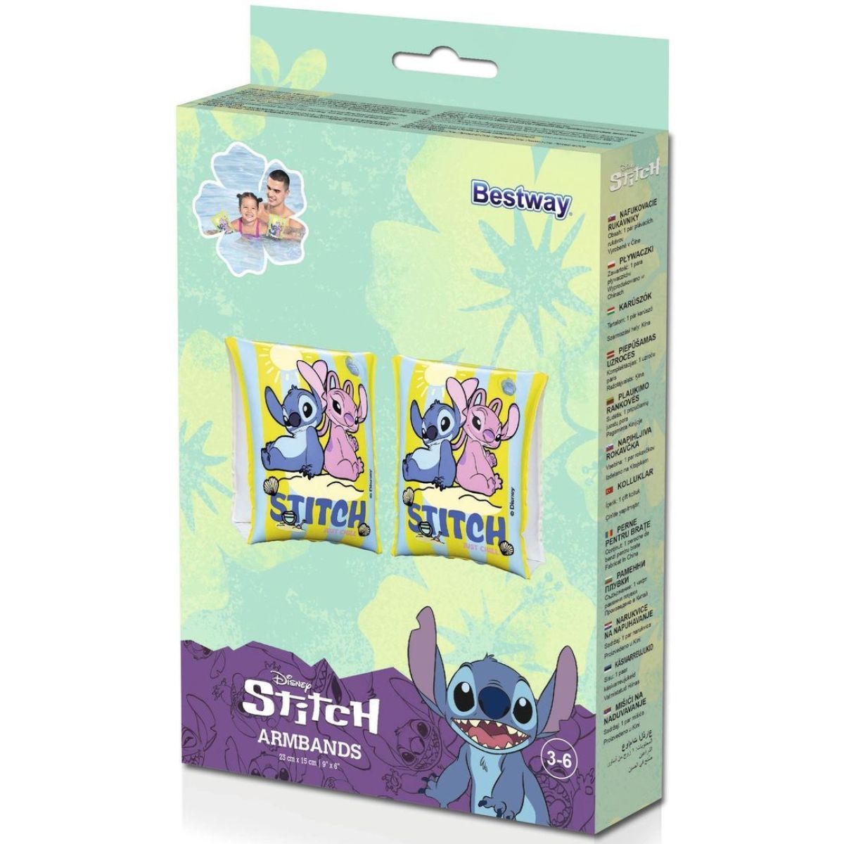 Tieto farebné plávacie rukávky Stitch sú ideálne pre deti vo veku od 3 do 6 rokov, ktoré sa chcú naučiť bezpečne pohybovať vo vode. Veselý motív obľúbenej postavičky Stitch so žltými a svetlomodrými pruhmi spraví z každého kúpanie príjemný zážitok. Rukávky sú vyrobené z mäkkého PVC materiálu, ktorý je odolný voči poškodeniu a zároveň pohodlný na nosenie.