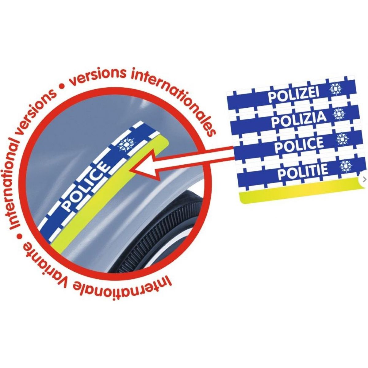 Policajné autíčko v stabilnom prevedení s bočnicami uspôsobenými pre prípadné pokľaknutie na jedno koleno pri jazde.