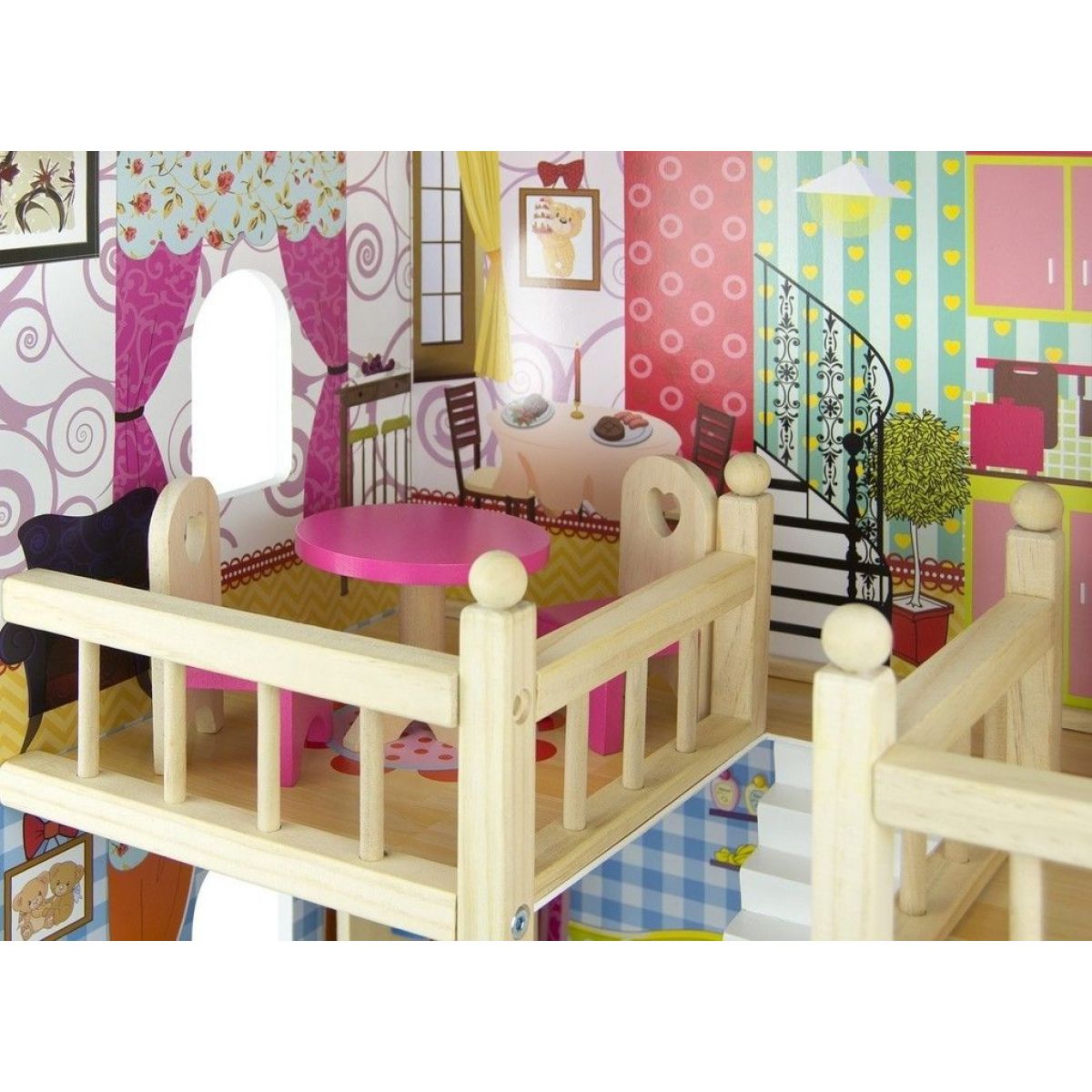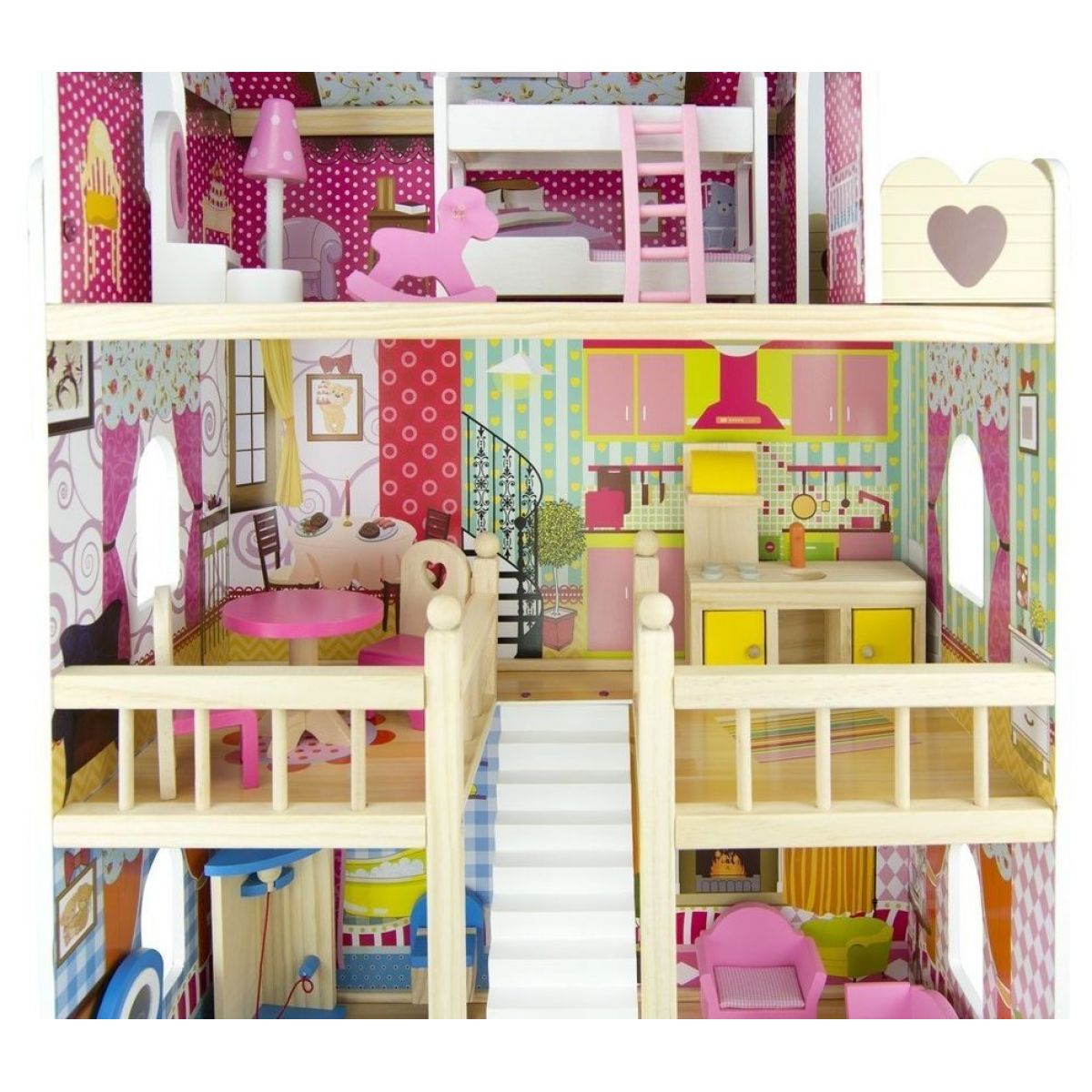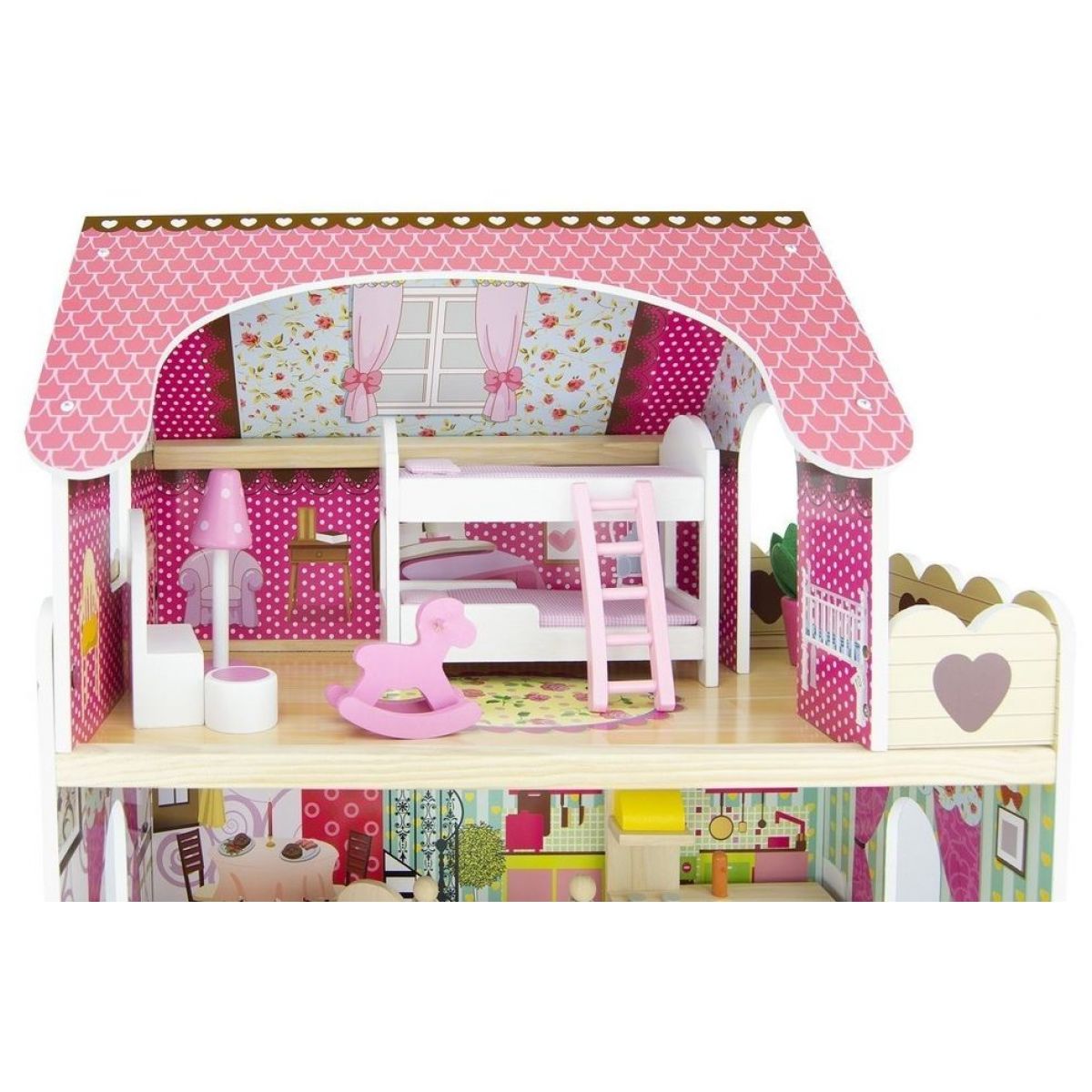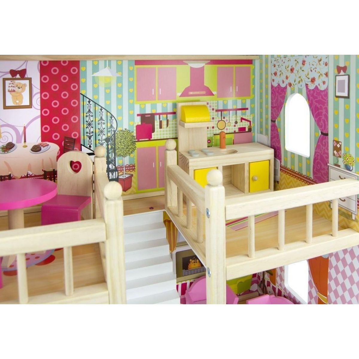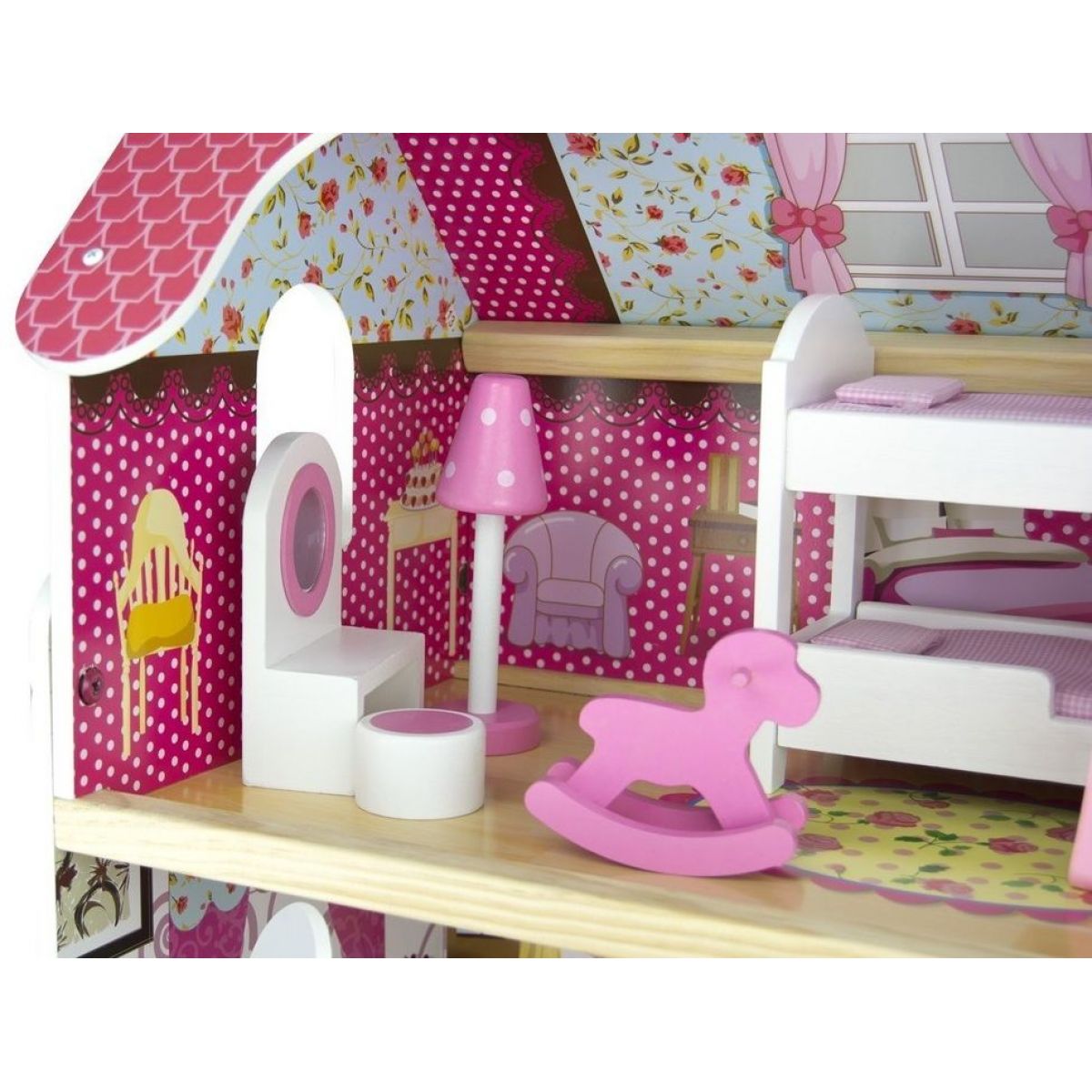 Tři patra jsou propojena schodištěm. V každém patře najdou holčičky pokoje i s vybavením. Mohou si krát se svými panenkami v kuchyňce, obýváčku, terase, pokojíčku s patrovou postelí nebo v koupelně.