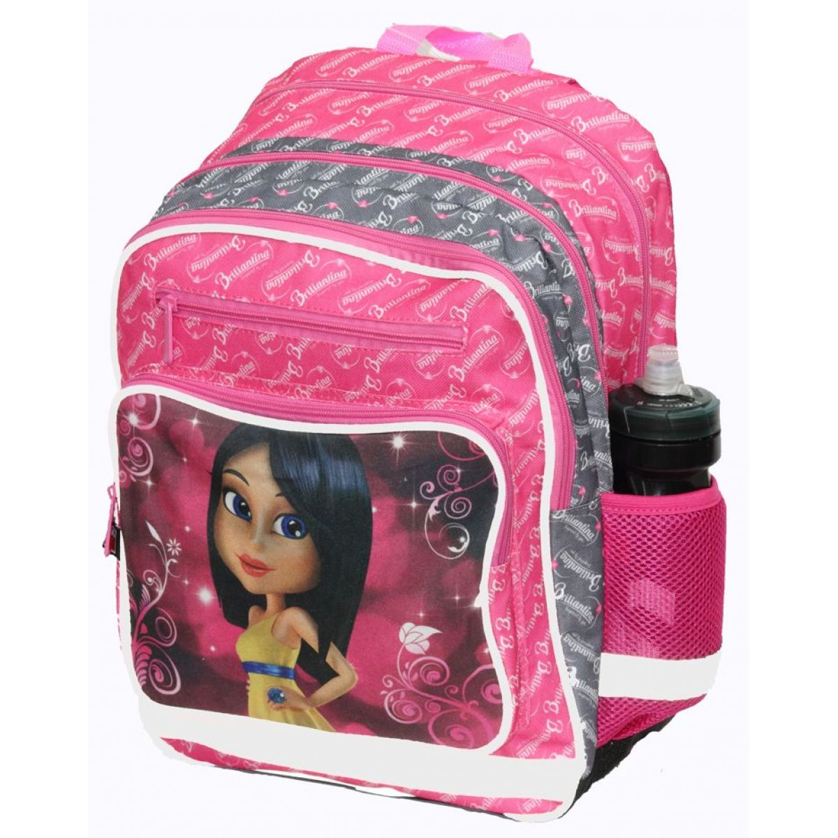 Školní tříkomorový batoh s motivem Briliantiny vhodný pro 1. stupeň základní školy. Prostřední a přední komora jsou stejně veliké a jsou doplněny o organizér a praktickou karabinu na klíče. Nejprostornější zadní komora je vhodná na učebnice a sešity.