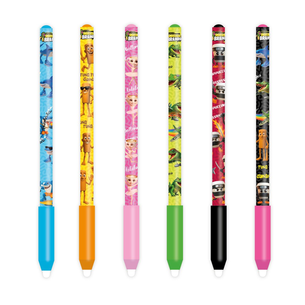 Píšte, mažte a bavte sa s Brainrot Mazací pero, ktoré prináša kúsok virálnej internetovej kultúry priamo do školského peračníka. Motívy Italian Brainrot menia obyčajné písanie na zábavný zážitok plný absurdných a originálnych postavičiek.