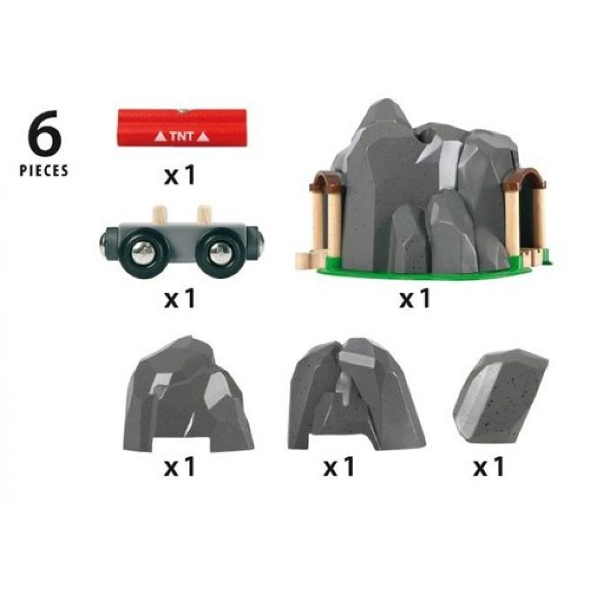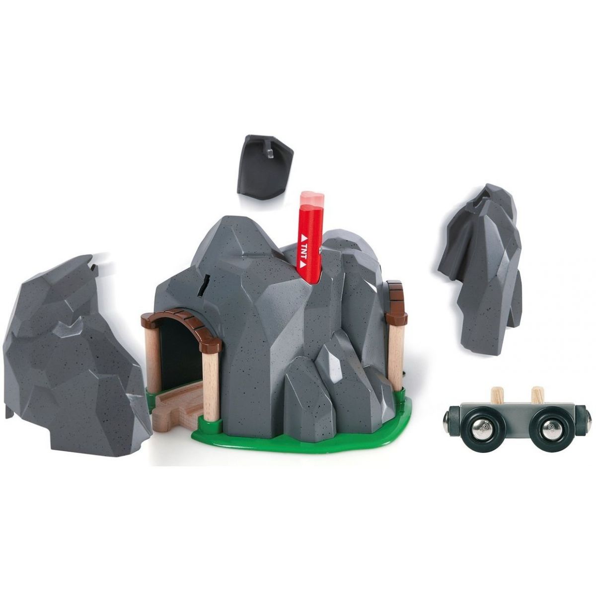 Tunel s rozbuškou.Odhalte tunel vnútri hory tým, že umiestnite dynamit do slotu horskej steny a necháte ho explodovať. Zahŕňa nákladné vozík a dynamit.