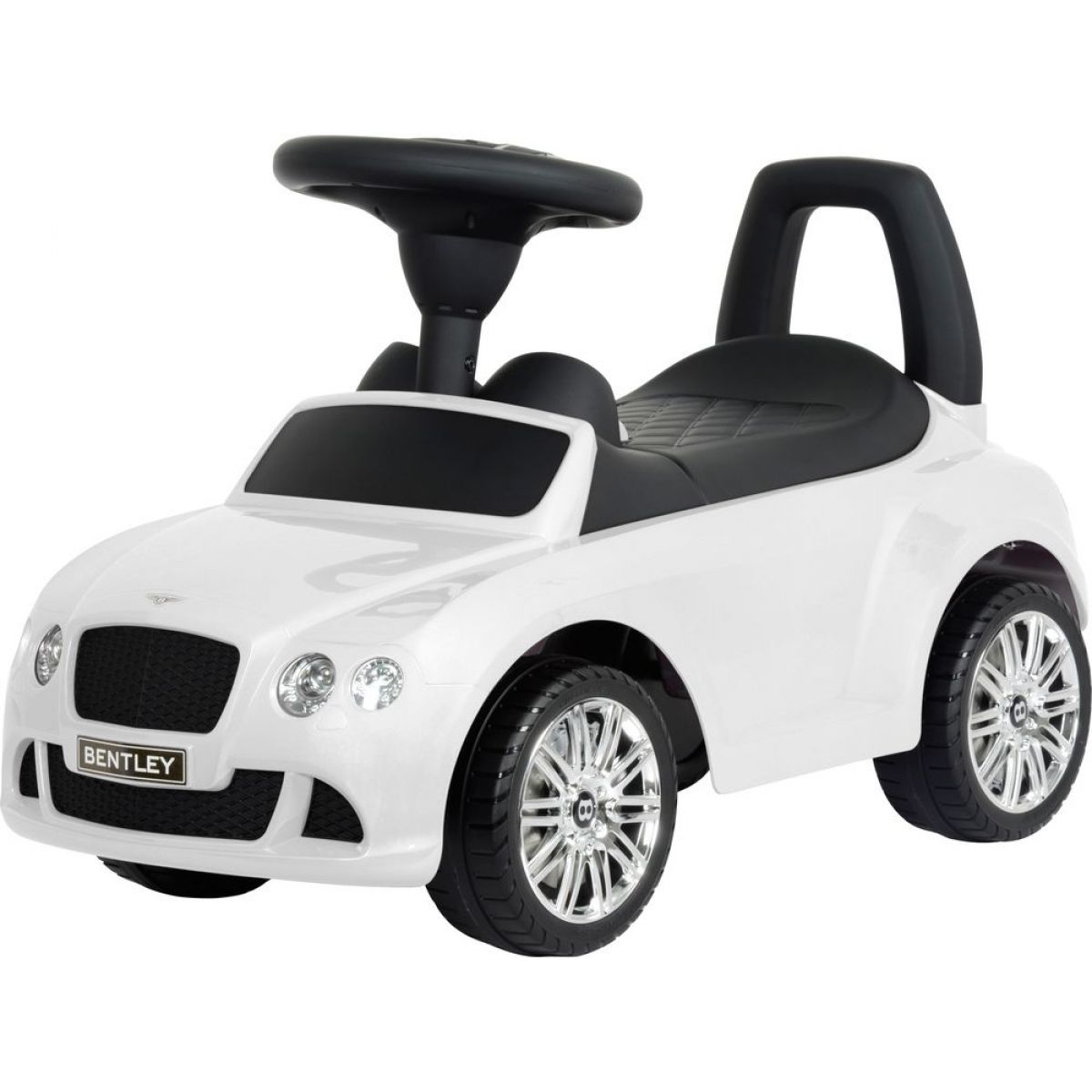 Bílé sportovní auto Bentley GT ve věrné zmenšenině, zpracované jako odrážedlo pro malé děti od dvou let. Odrážedlo se dodává v rozloženém stavu. K montáži je potřeba křížový šroubovák, montáž zabere cca 10 minut.