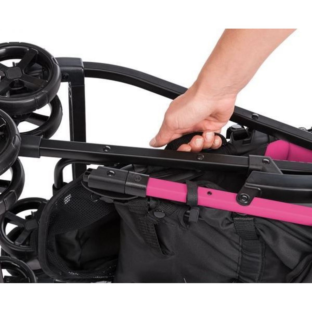 Ružový športový kočík, ktorý je určený pre deti od narodenia do 15 kg.