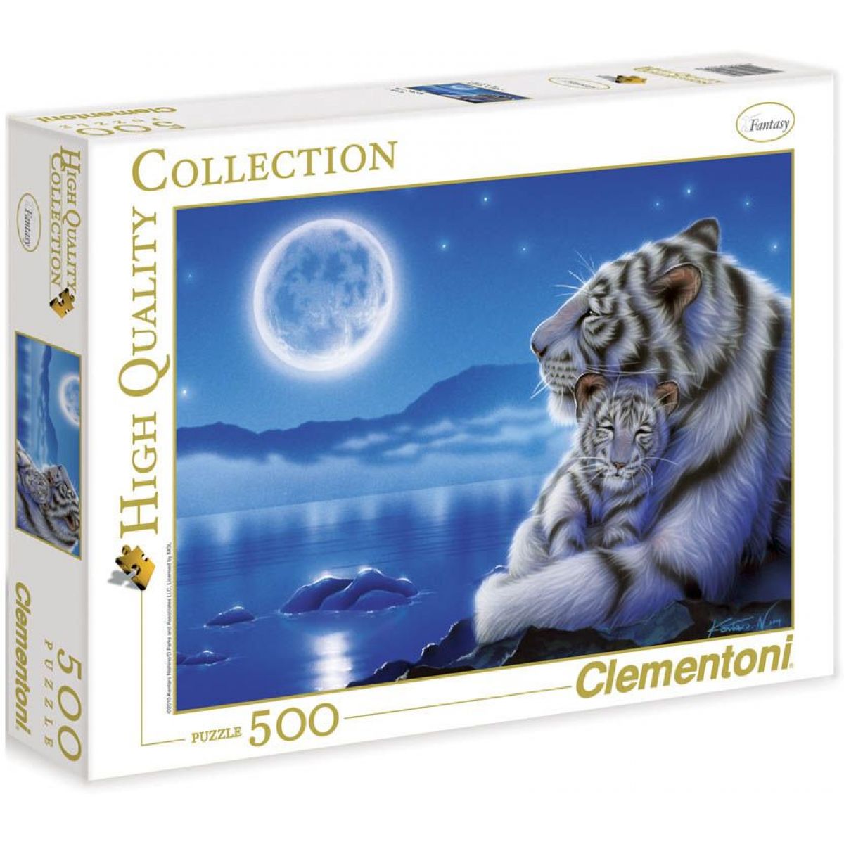 Bílou tygřici s jejím mládětem odpočívající v měsíční krajině, si mohou poskládat jako puzzle obrázek z 500 dílků. Kvalitní tisk jim zaručuje ve výsledku krásný obrázek sytých a plných barev. Po složení je puzzle výbornou dekorací pokojíku.